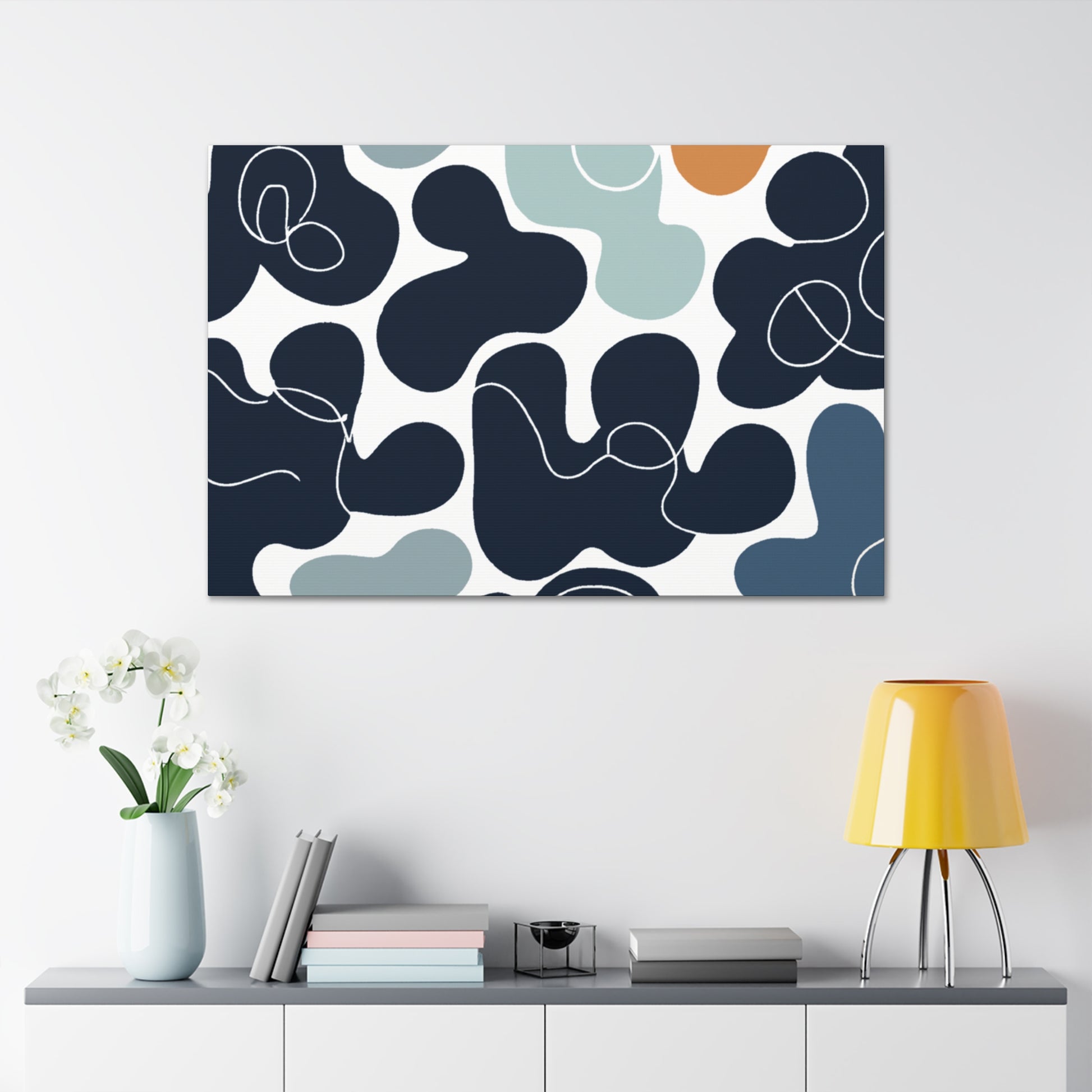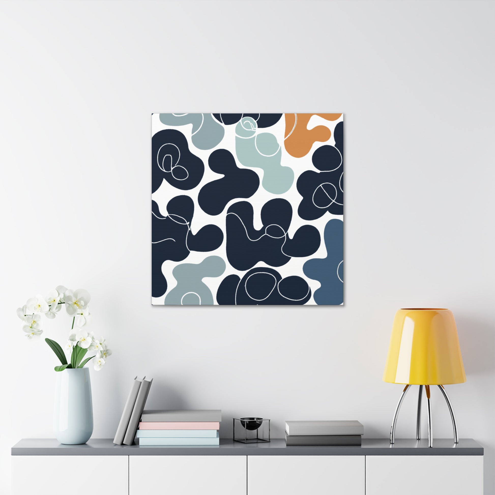 This canvas of an abstract geometric pattern with cool colors is perfect for bringing a calming vibrancy to any space. The color palette of blues and greens give the feeling of serenity and relaxation in a mid-century modern style. The canvas is made of quality materials and measures 24x36 inches, making it an ideal fit for any wall. Refresh your living space and bring some modern art into your home with this stunning piece. #Abstractart #Geometricpattern #Artisticcanvas #Modernart #Coolcolors #Abstractgeometricpattern #Midcenturymodern #Geometriccanvas #Abstractcanvas #Decorativecanvas