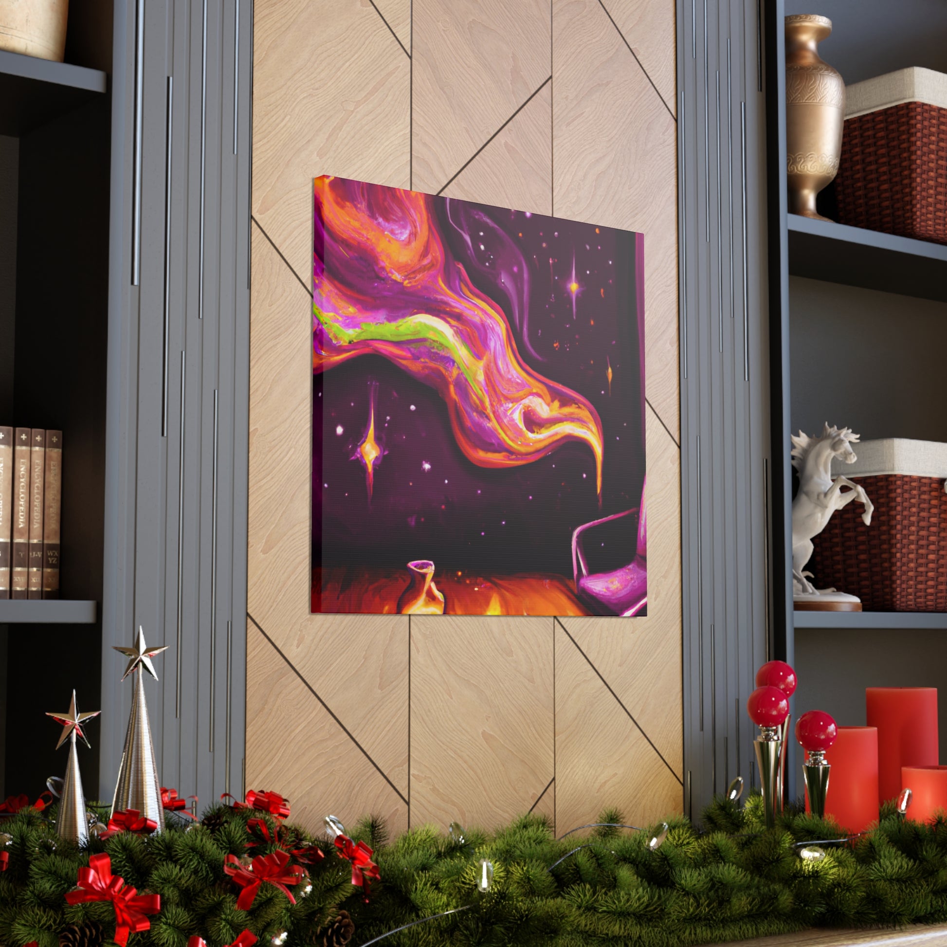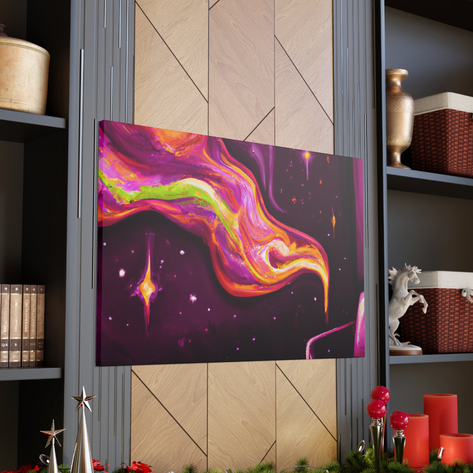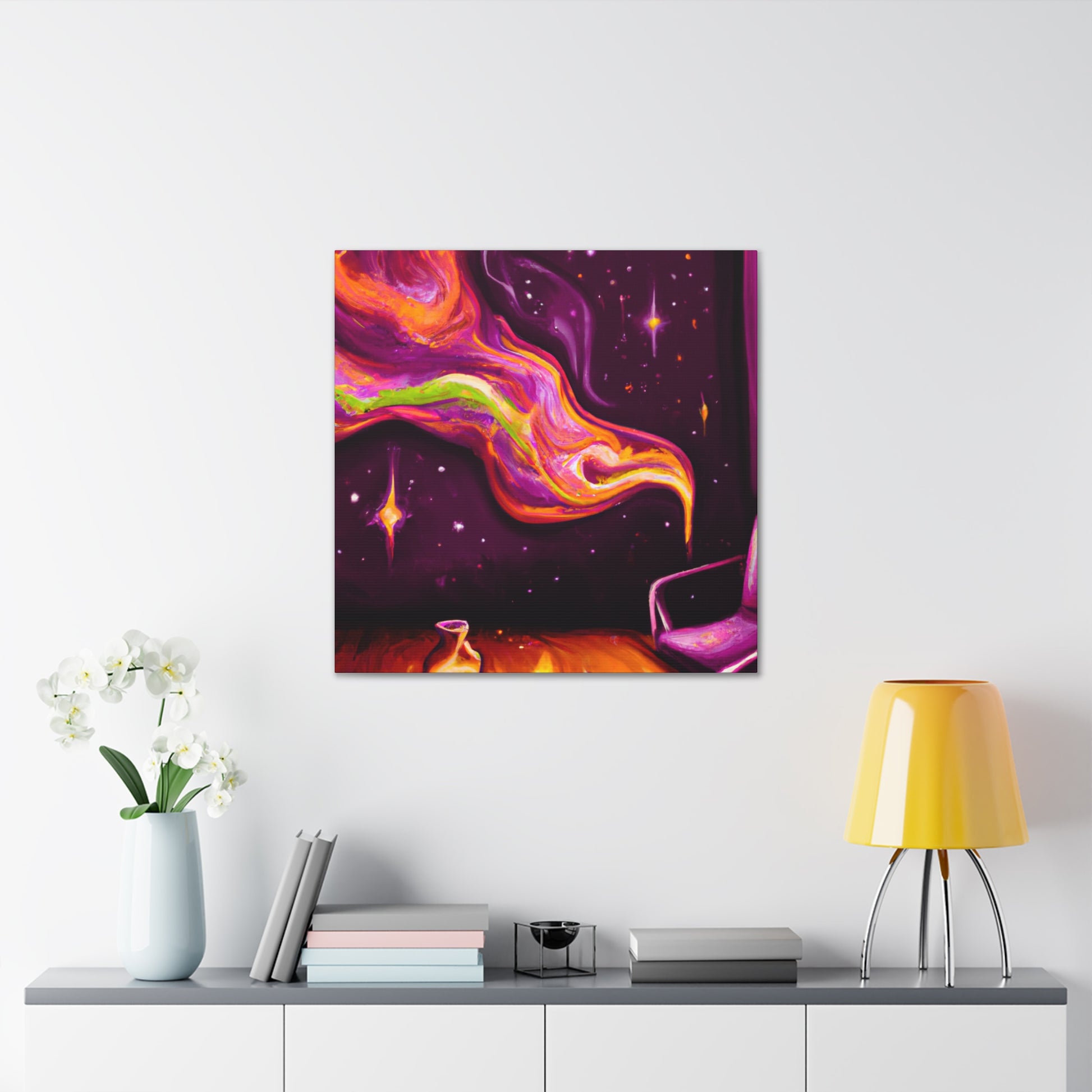 This vibrant canvas will bring a psychedelic pop of colour to your living room. With its abstract shapes and sharp geometry, this digital artwork will add a contemporary finish to your interior. Let your imagination take flight and enjoy this trippy painting. #digitalart #canvasart #abstractart #livingroomdecor #trippypainting #psychedelicart #vibrantart #trendyart #contemporaryart #geometricart #modernart