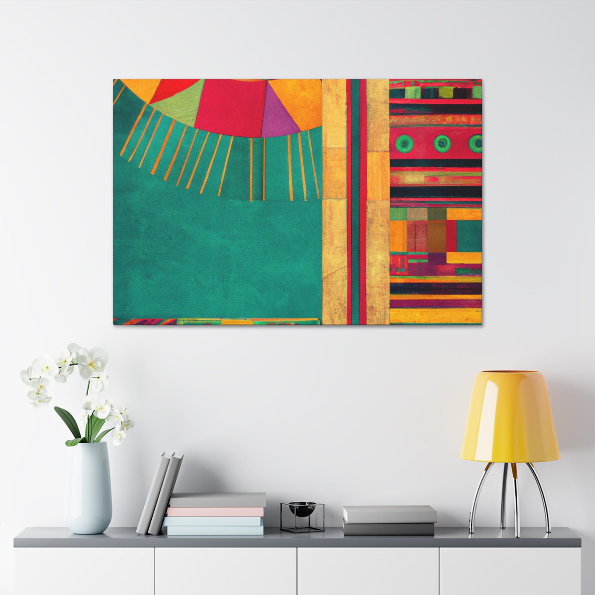 This canvas of patterned geometry painting will make a stunning statement in your living room. The painting is digitally inspired featuring sharp lines and vibrant hues, showcasing a unique composition. The subtle palette has distinct depth and character, providing an inventive spin on your stylish décor. Measuring 24 by 36 inches, it's an ideal canvas for those looking for that perfect modern center piece for their space. #digitalart #livingroomdecor #patternedgeometry #canvaspainting #wallart #richhues #modernstyle #statementpiece #stylishdecor #highenddecor #subtlepalette