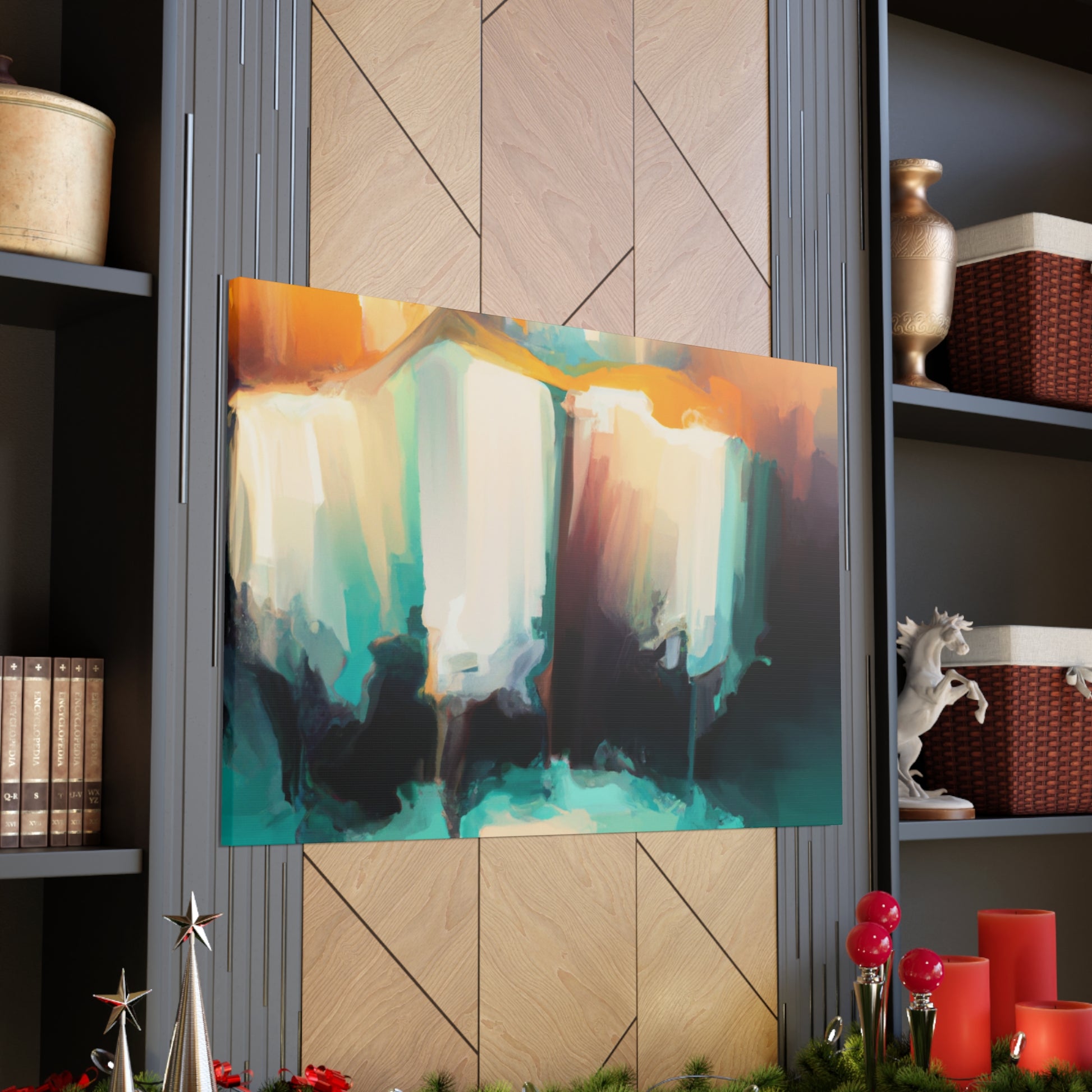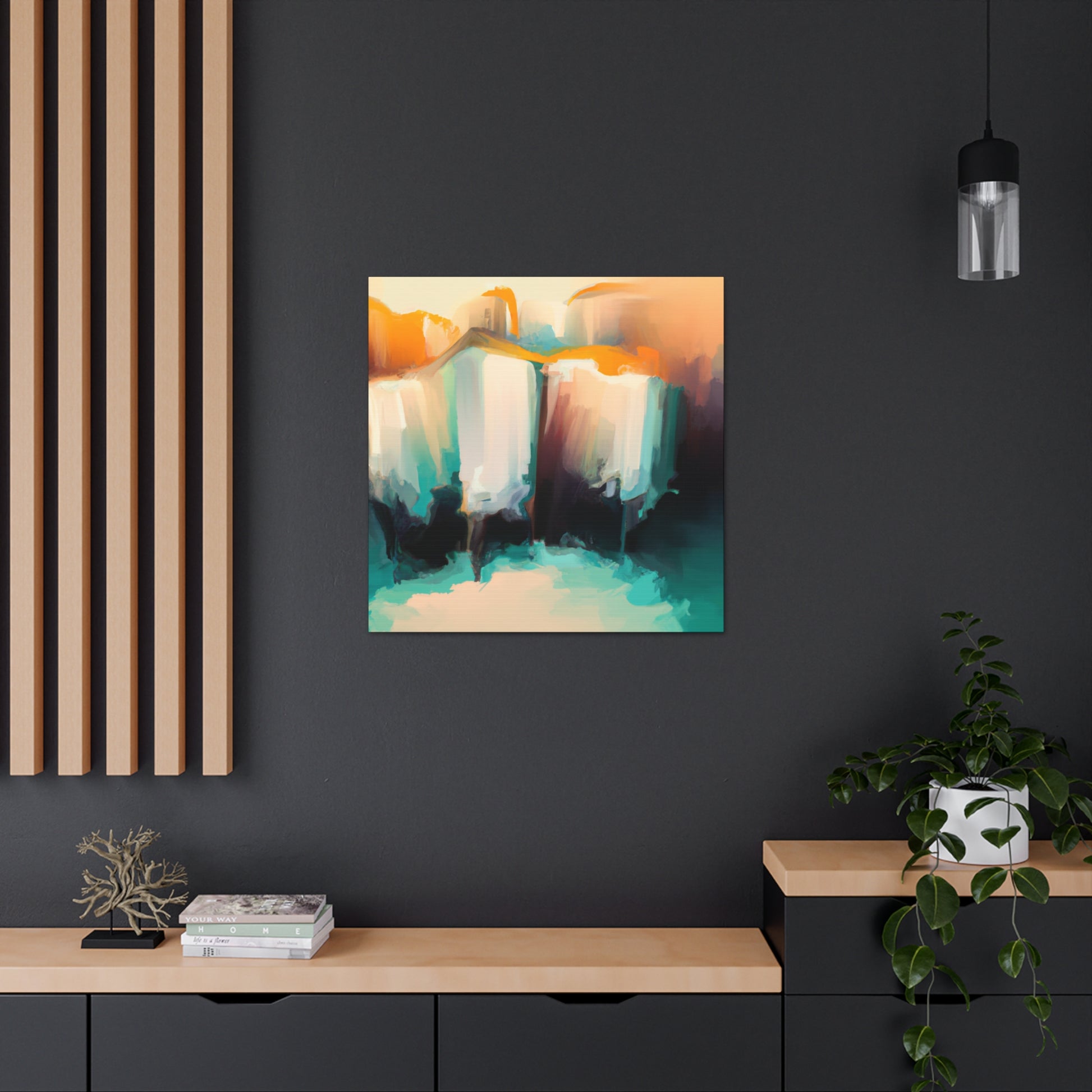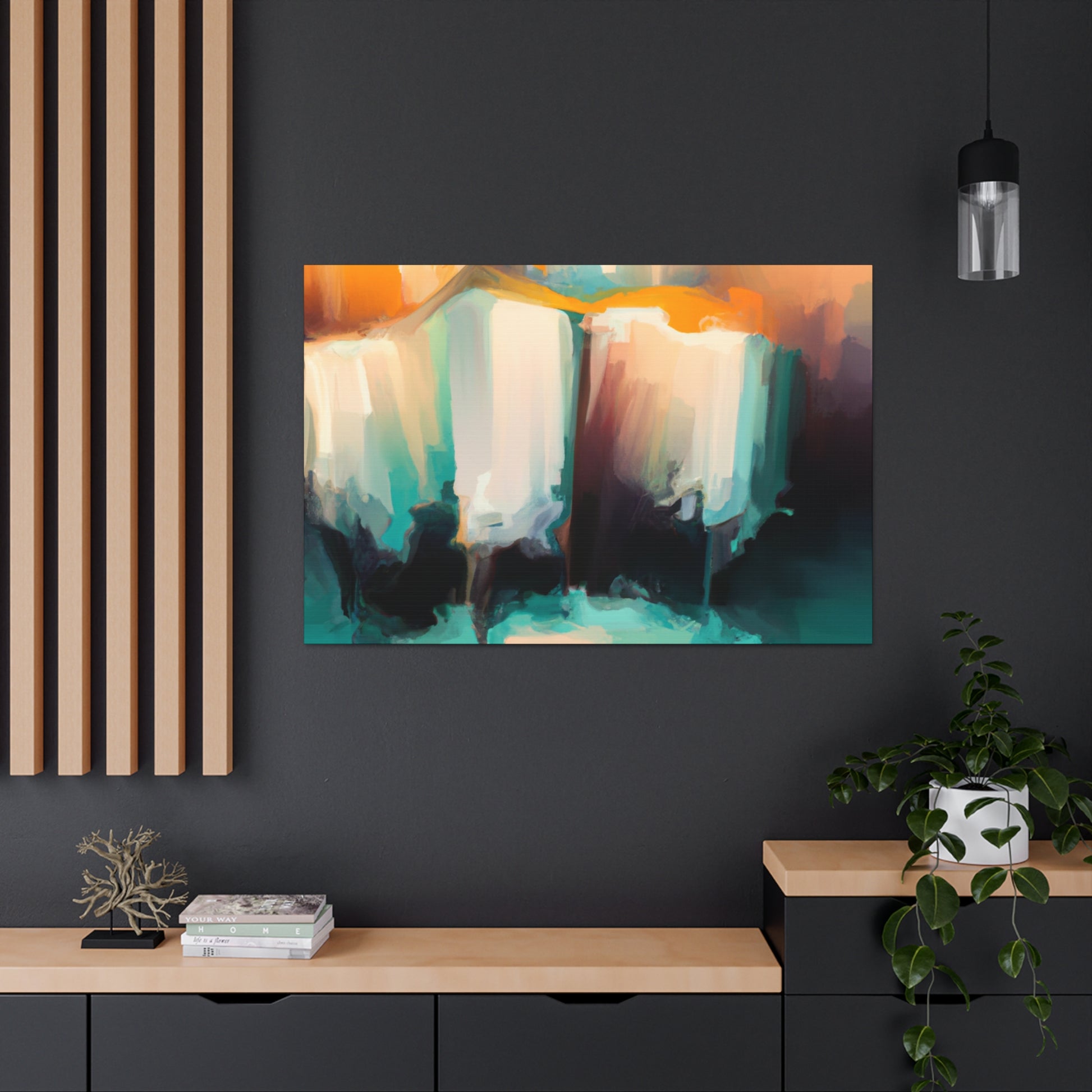 This abstract painting is a perfect way to add an artistic touch to your living room. Featuring vibrant blocks of colours seamlessly blended together with digital art, this canvas will bring out any room's unique charm. Versatile and modern, this eye-catching work will bring a unique edge to your interior design. #artwork #contemporary #modernstyle #abstract #abstractart #digitalart #vibrant #colourful #homeinterior #homeaccessories #walldecor