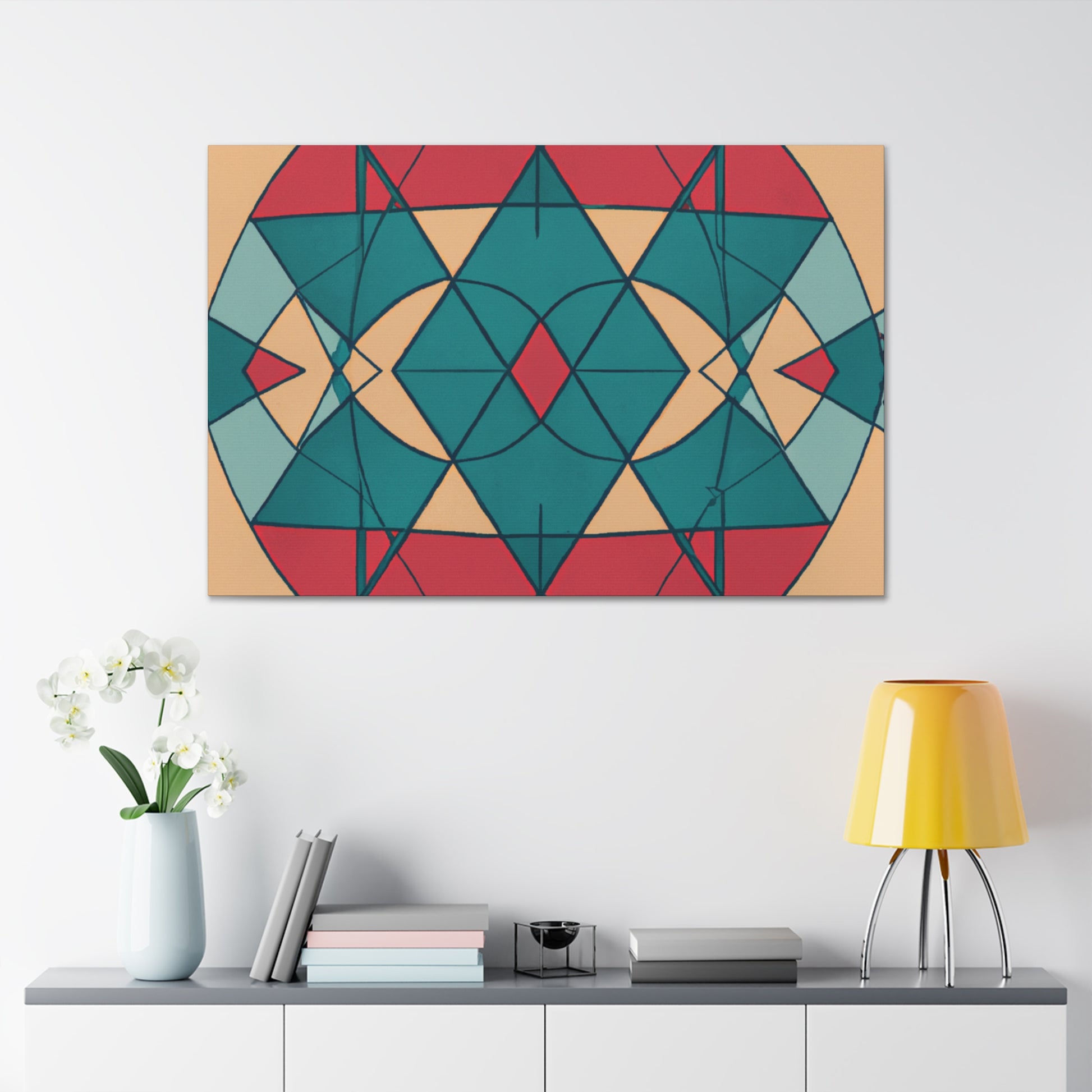 This canvas art is perfect for infusing abstract style with a modern twist in your living room. The vibrant colour palette and bold geometric shapes create a striking print that will draw in the eye for a captivating statement. This digital art has been printed on quality canvas for long-lasting beauty. Hang this unique PATTERNED GEOMETRY PAINTING FOR LIVING ROOM, DIGITAL ART, and display in your modern home for a beautiful touch. #abstract #design #modernstyle #geometry #livingroom #interiorstyle #patterned #painting #canvas #wallart #digitalart