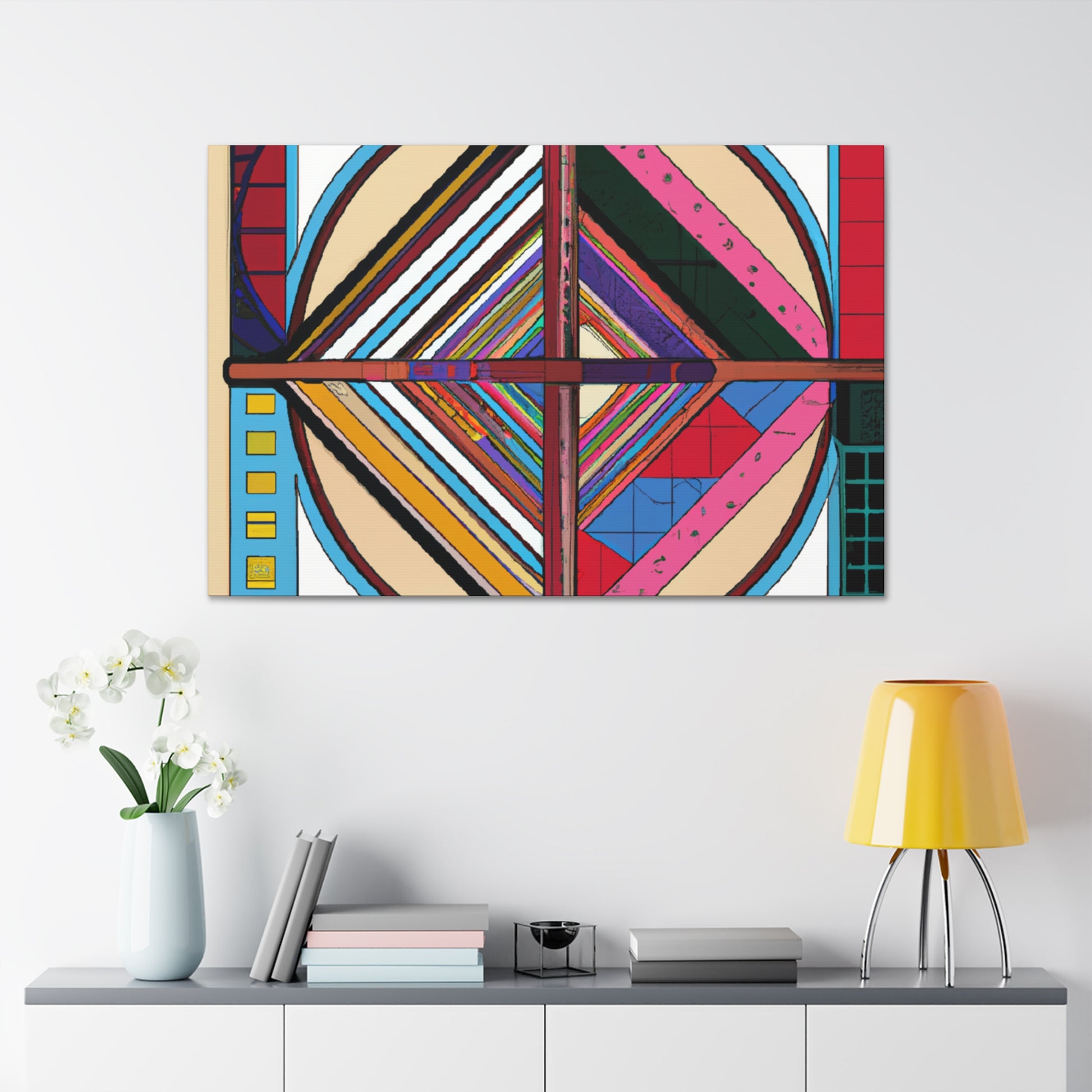 This digital art is a perfect balance of geometric patterns and calming colors, perfect for adding a touch of flair to any living room. This digitally printed, gallery-wrapped canvas adds some texture and depth, making this painting pop. With its vibrant earth tones, this painting adds warmth to any room it adorns. Easy to hang, make a statement and bring the essence of modern art into your home or office. #canvas #digitalart #geometricalart #patternedpainting #modernart #mutedcolors #calmingcolors #gallerycanvas #livingroomdecor #homedecor #walldecor