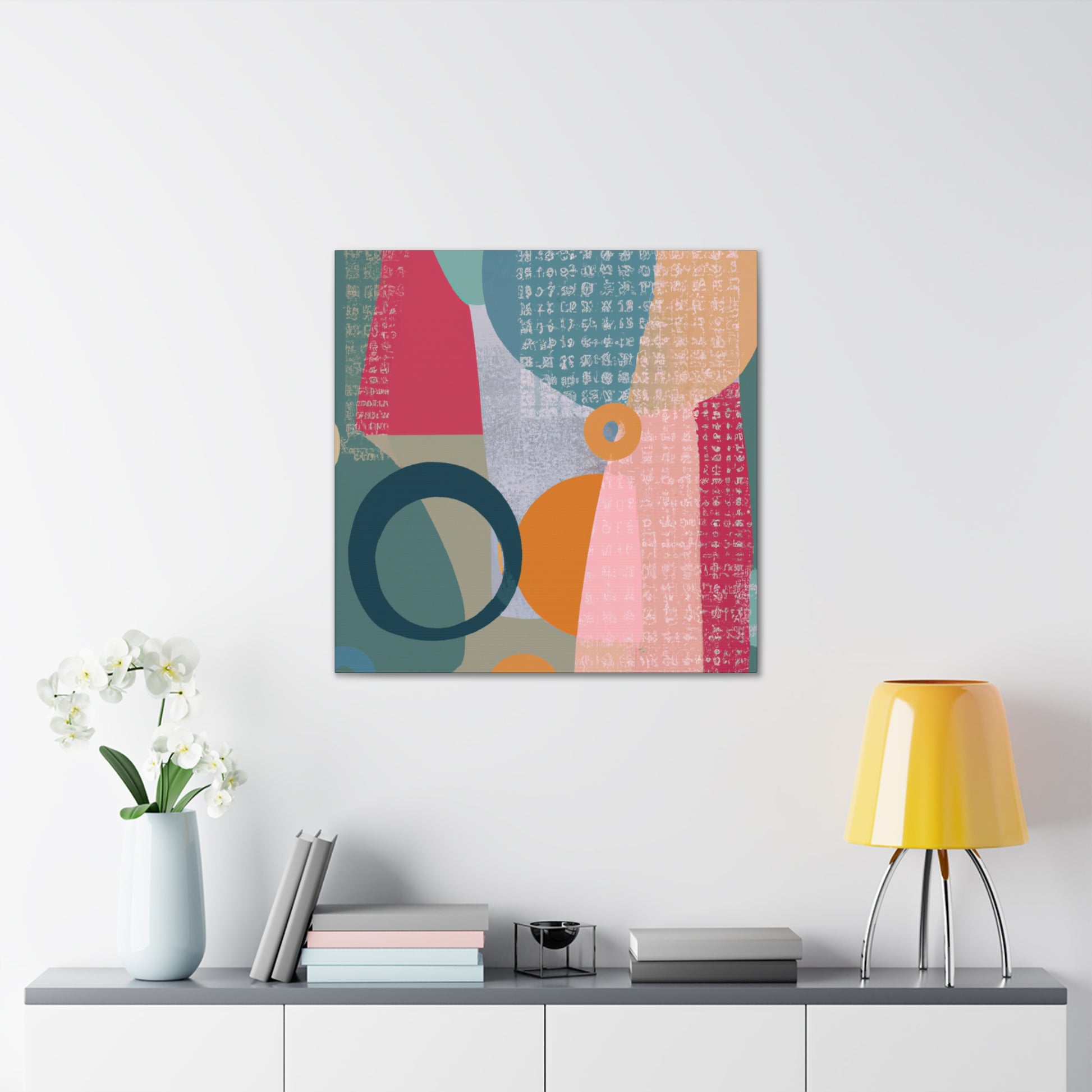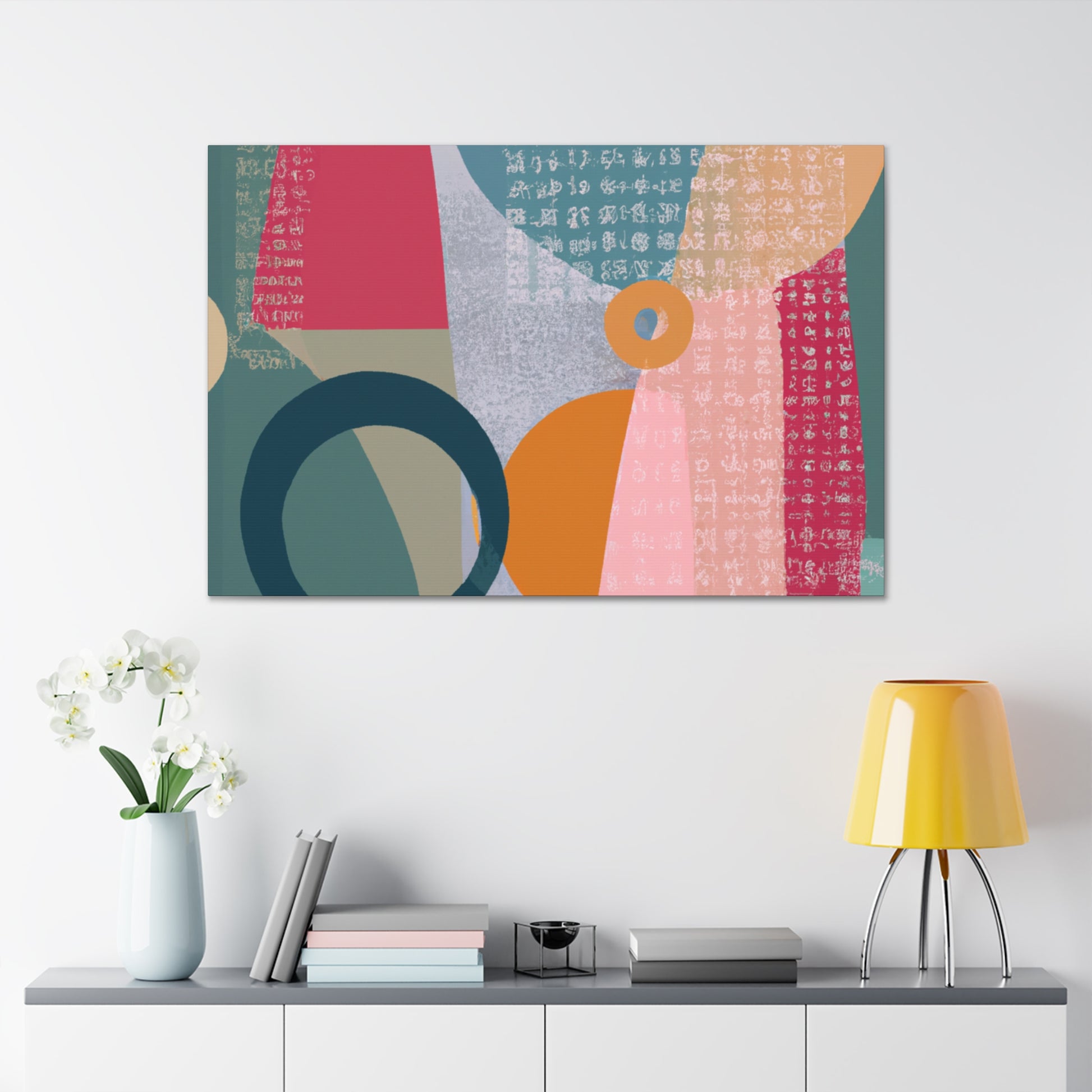 This canvas of patterned geometry painting inspired from digital art is the perfect addition to brighten up any living space. With a mix of vibrant and earthy tones, this one-of-a-kind piece will awaken and bring life to your living room. The bold details give depth and character, transforming your space into a cozy atmosphere. #digitalart #geometricpainting #patternedart #canvasart #wallart #livingroomdecor #homedecor #roomdecor #bolddetails #roomrefresh #vibranttones