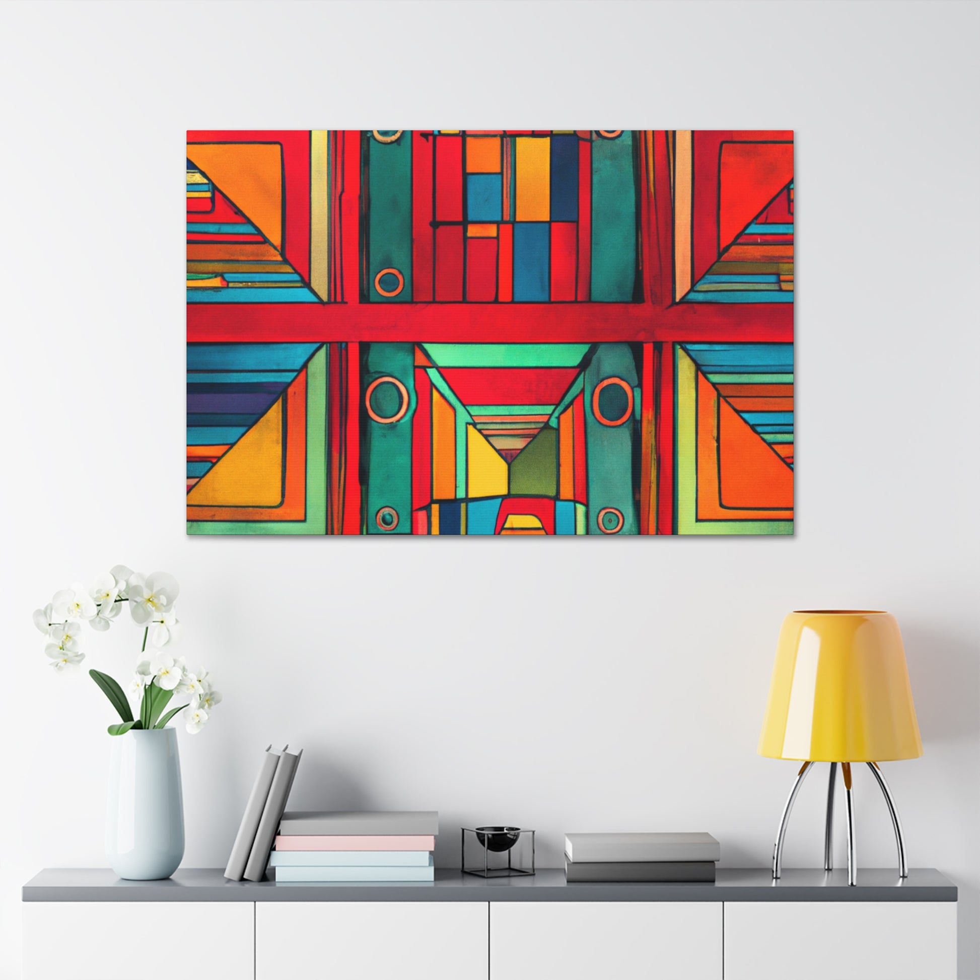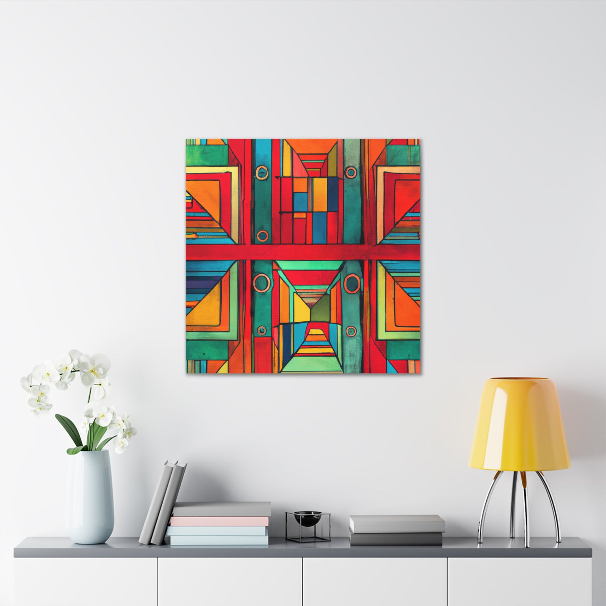 This digital artwork of a patterned geometry painting is a stunning addition to any home. A perfect centerpiece for your living room, its calming design helps bring tranquility to a space. Create an atmosphere of peace, stillness and elegance with this painting. It is easy to hang and requires no other accessories. Make your home look even more beautiful and welcoming with this one of a kind design. #patternedgeometrypainting #canvaspainting #digitalart #livingroomart #roomdecor #artpiece #digitalartwork #calmvibes #peacefulatmosphere #homedecor #interiordesign #elegantlook