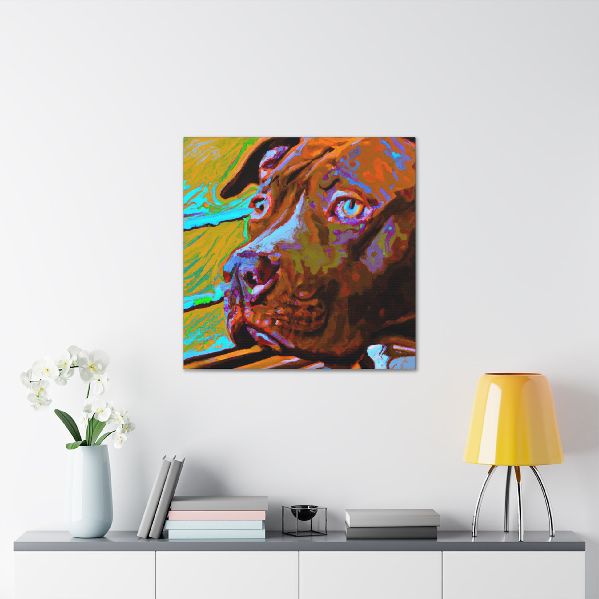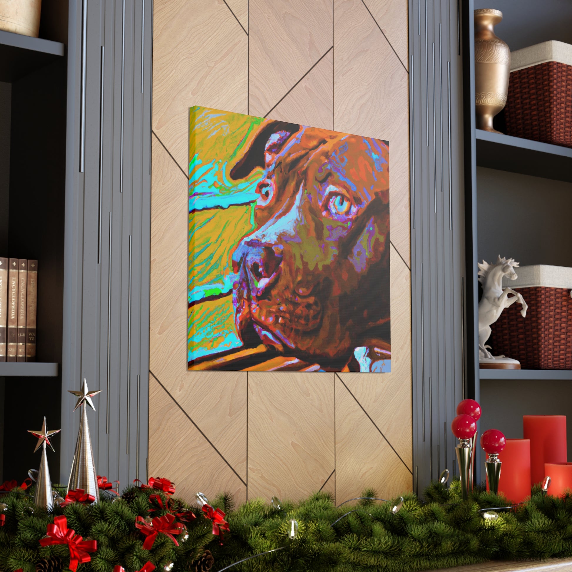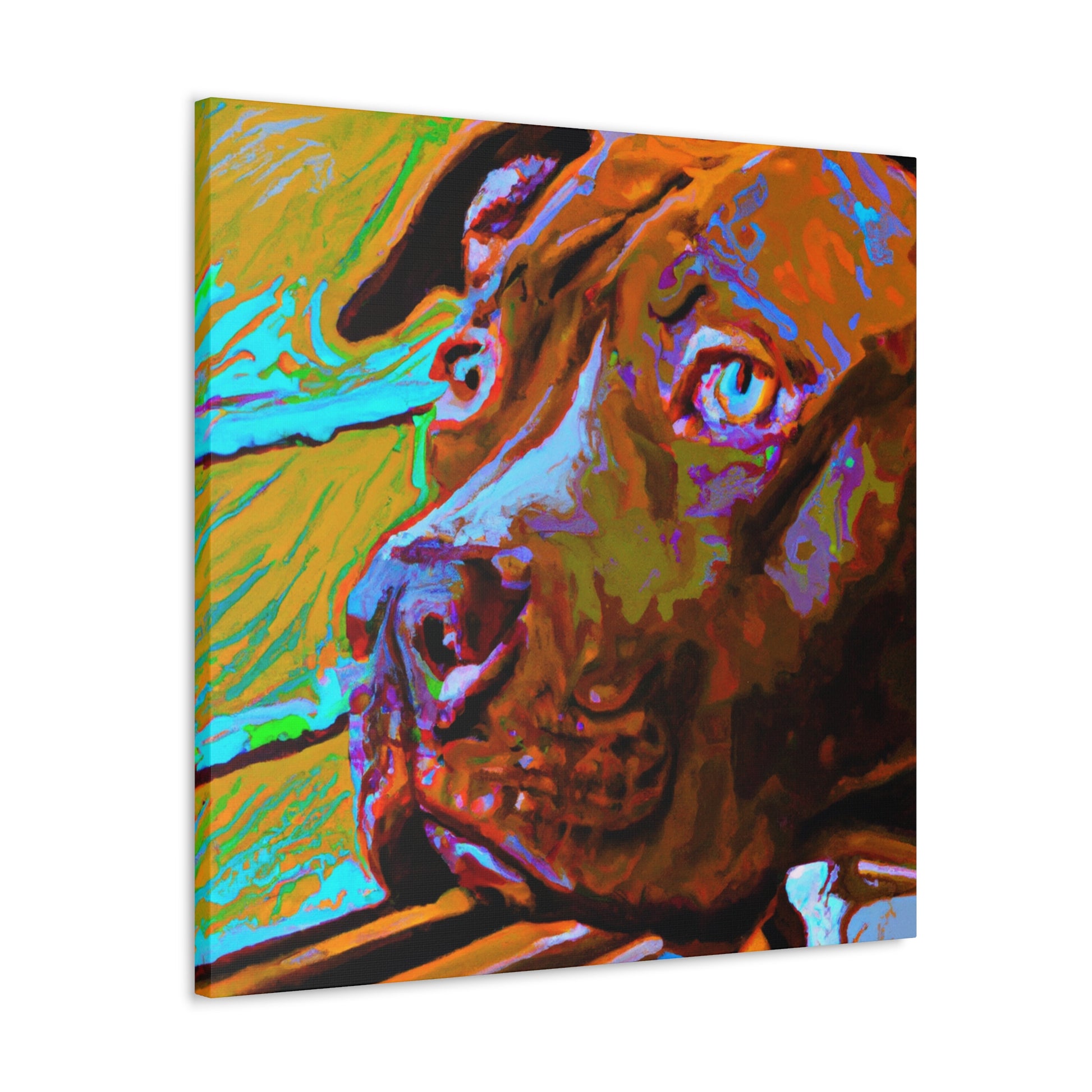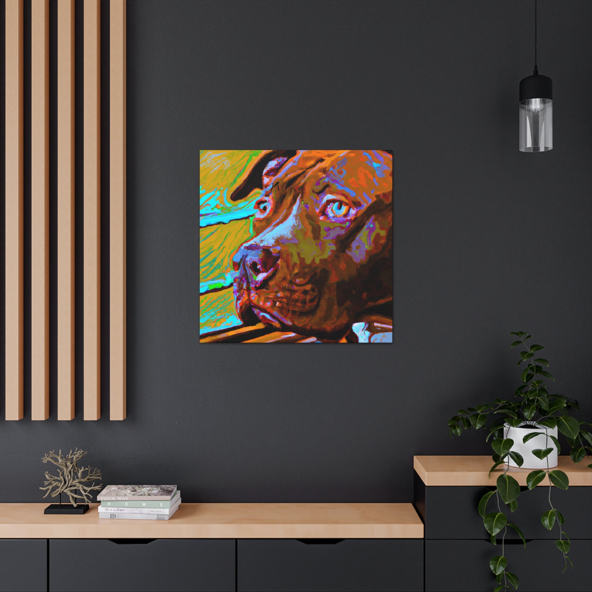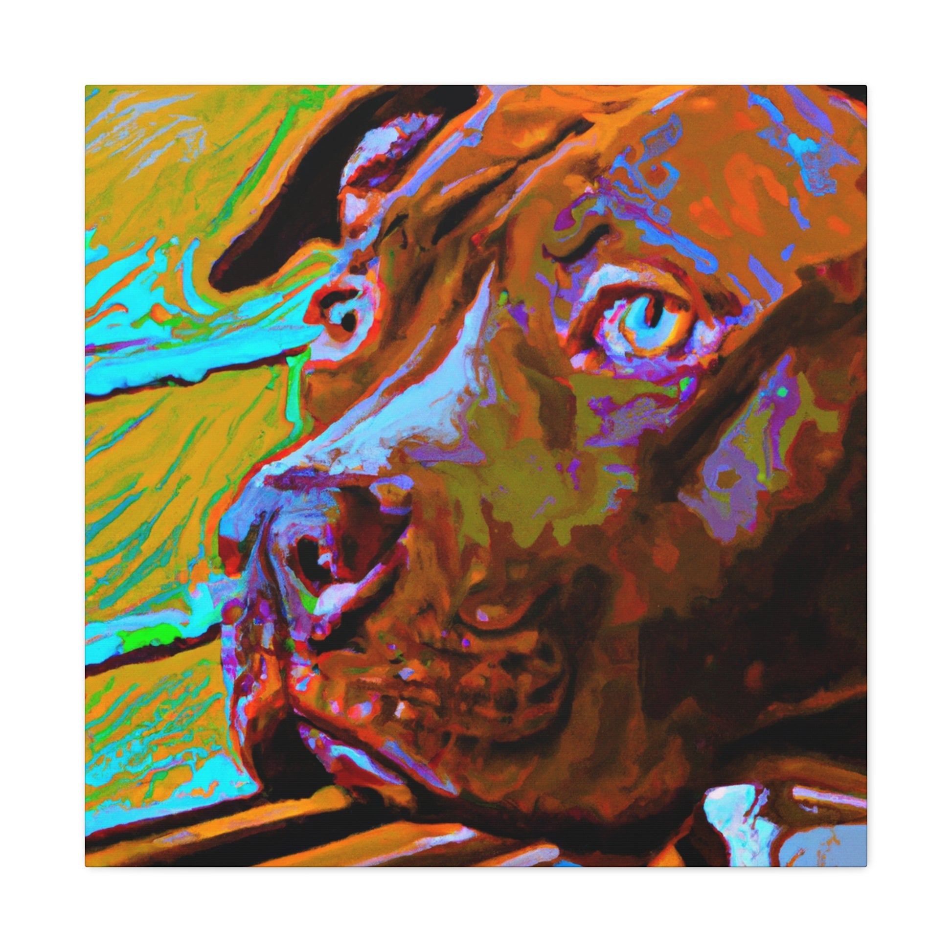 This exquisite, evocative abstract canvas is a profound ode to animal lovers. Vibrant and captivating colors bring a lovely young brown pit bull to life, looking longingly out the window. The wild vibrancy of the surrounding details, yet the noticeable clarity of the pooch, defined by his big, intelligent eyes, makes this a beautiful conversation starter. #puppylife #doglovers #abstractpainting #artforsale #artistcontemporary #canvaspainting #abstractart #pitbulls #wallartdecor #masterpiece #dogart