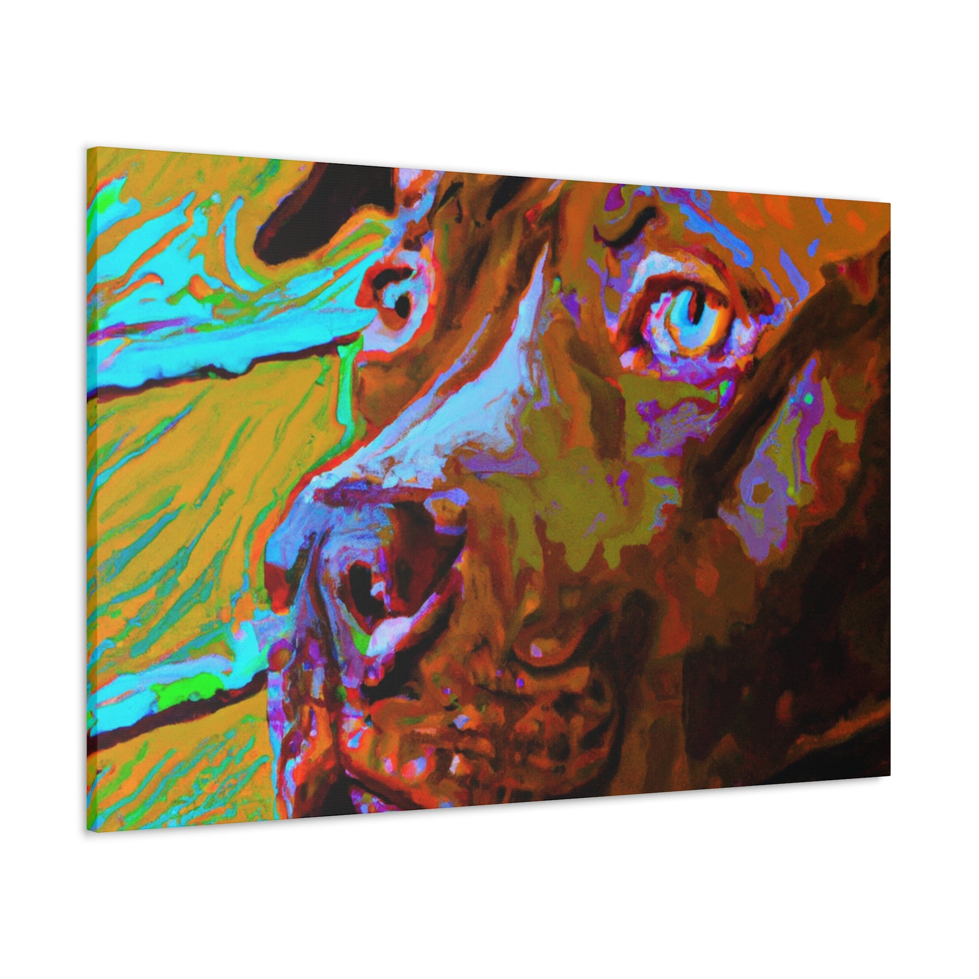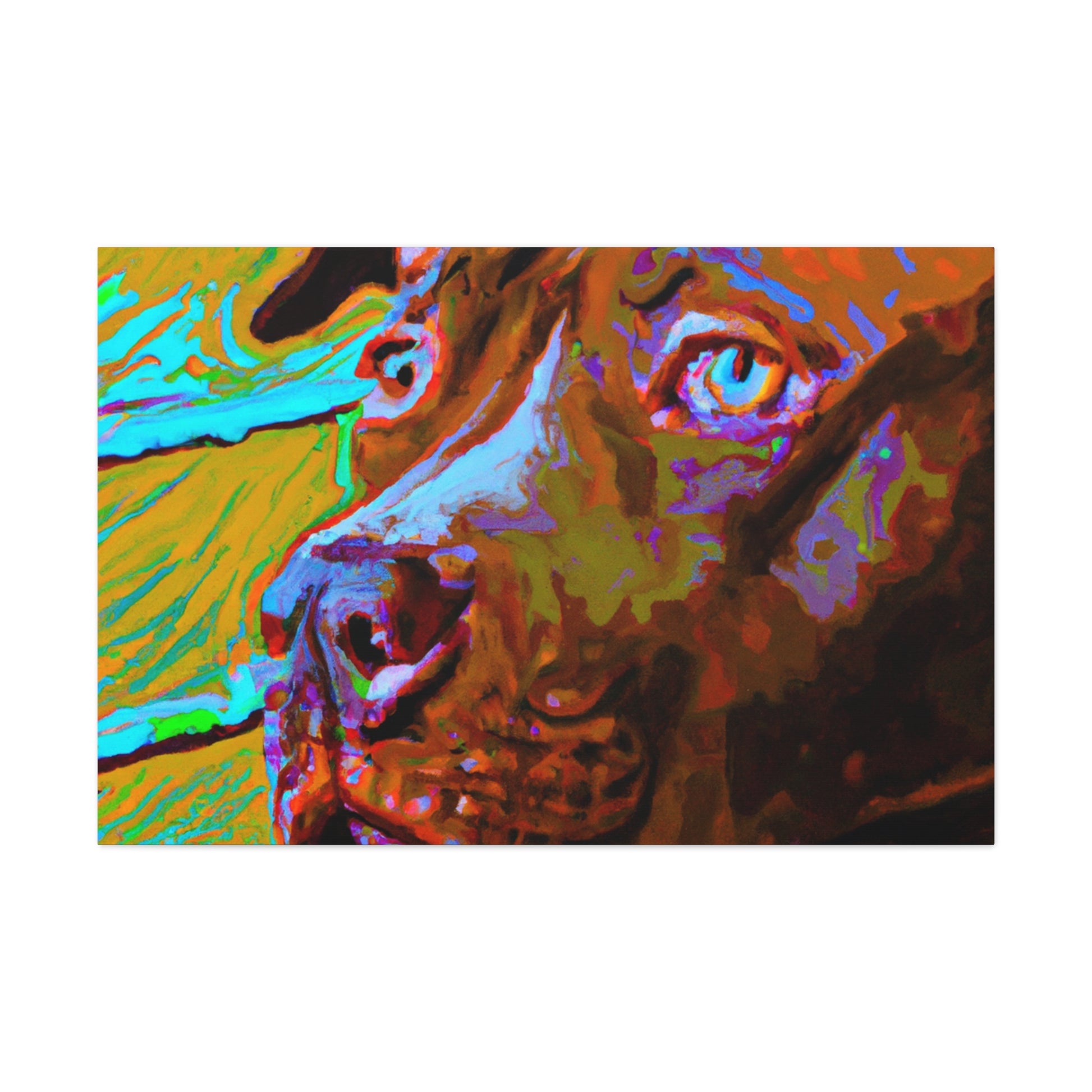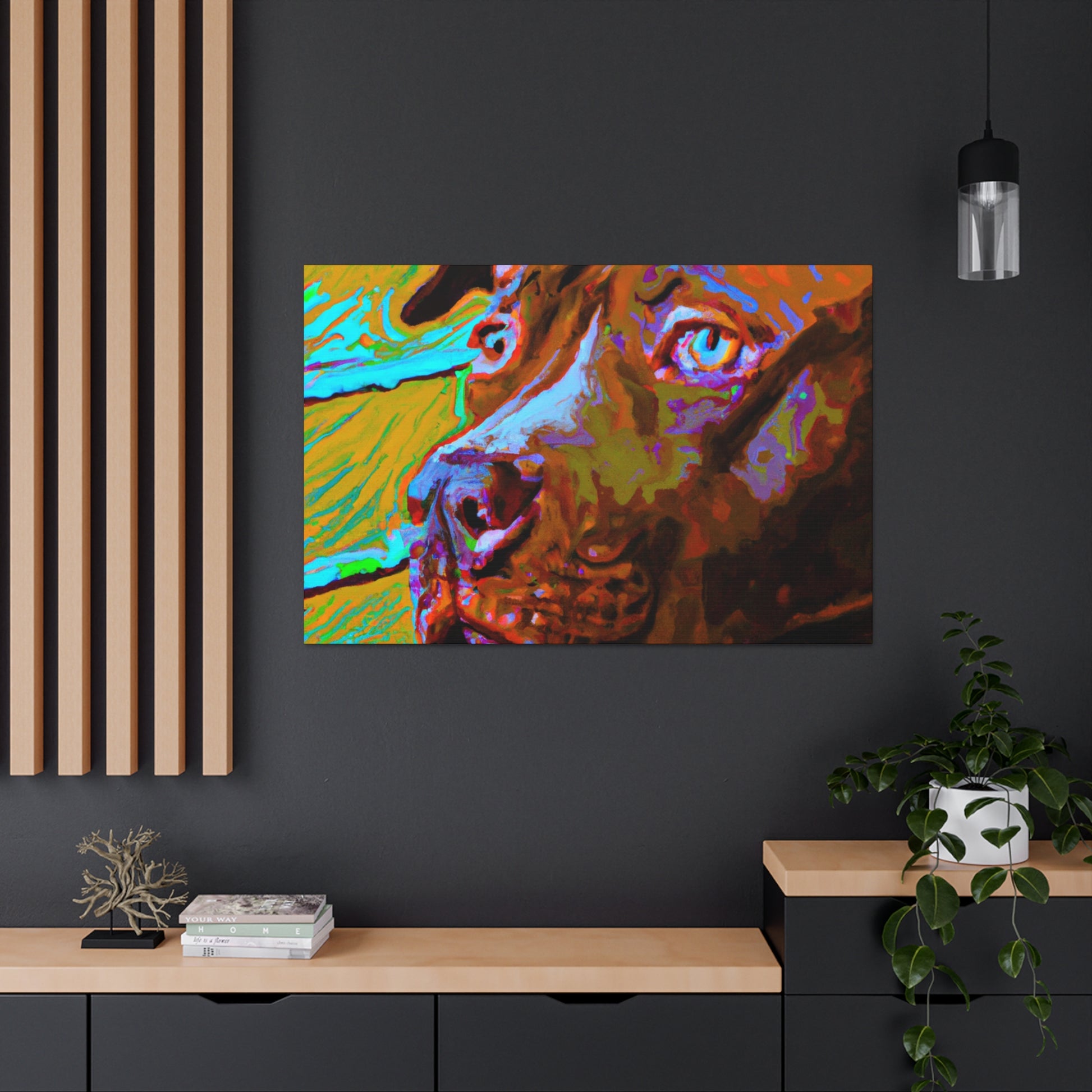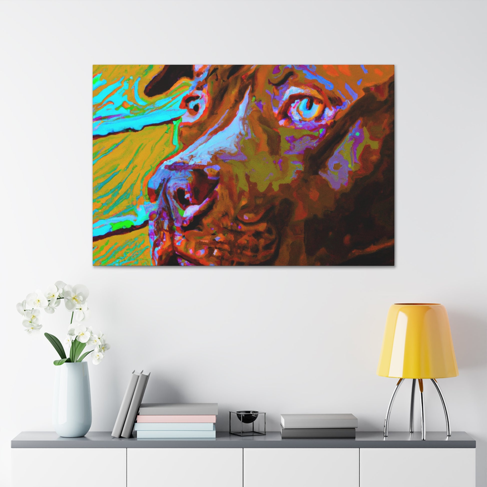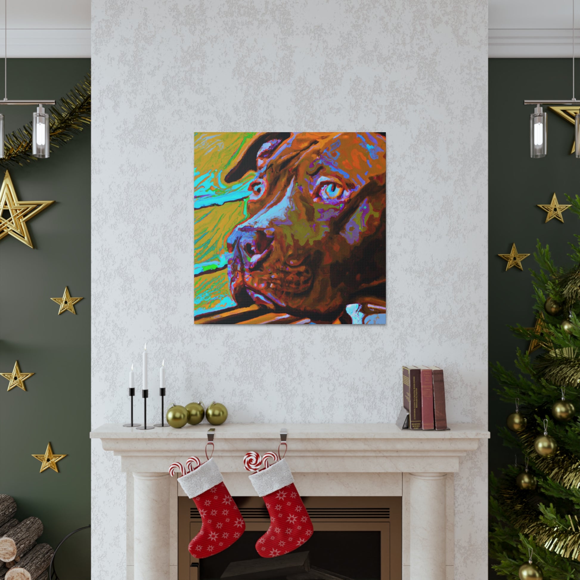 This exquisite, evocative abstract canvas is a profound ode to animal lovers. Vibrant and captivating colors bring a lovely young brown pit bull to life, looking longingly out the window. The wild vibrancy of the surrounding details, yet the noticeable clarity of the pooch, defined by his big, intelligent eyes, makes this a beautiful conversation starter. #puppylife #doglovers #abstractpainting #artforsale #artistcontemporary #canvaspainting #abstractart #pitbulls #wallartdecor #masterpiece #dogart