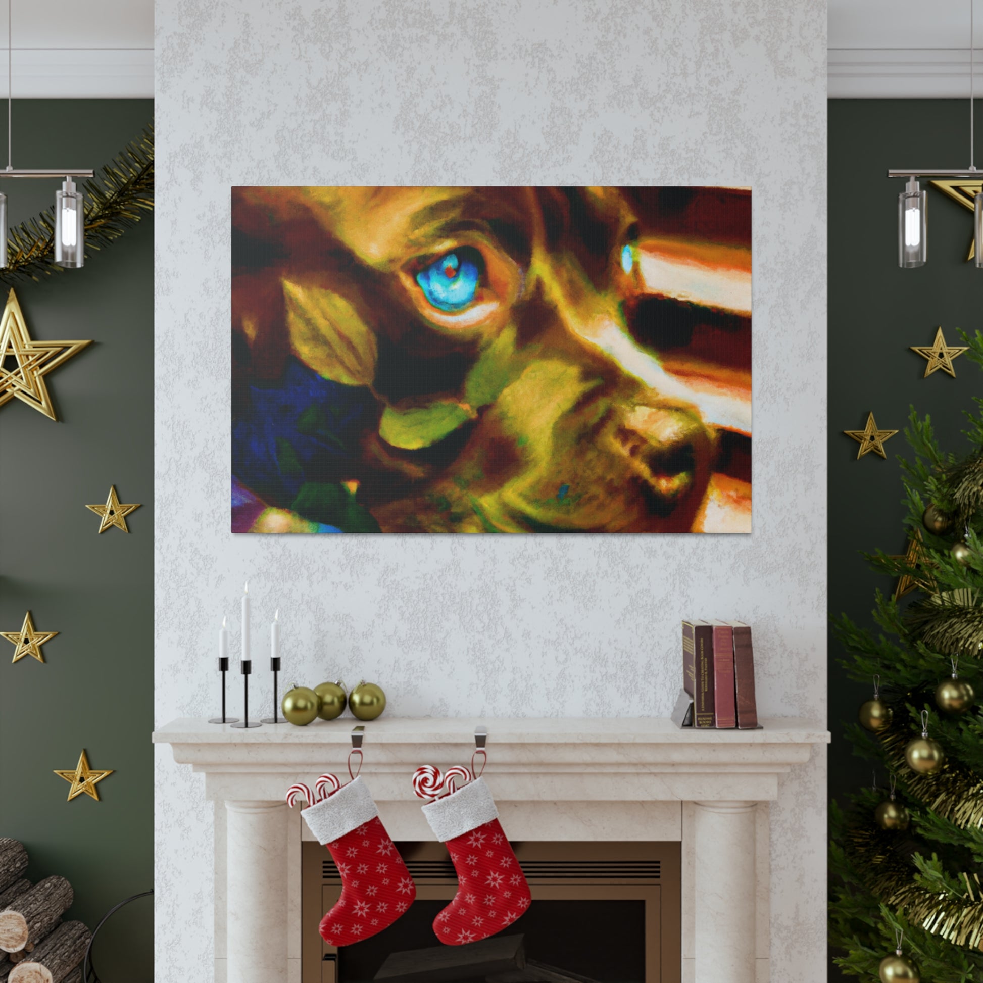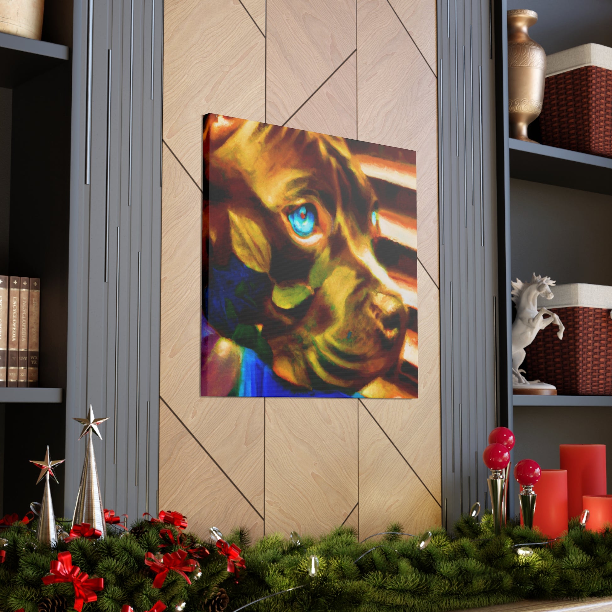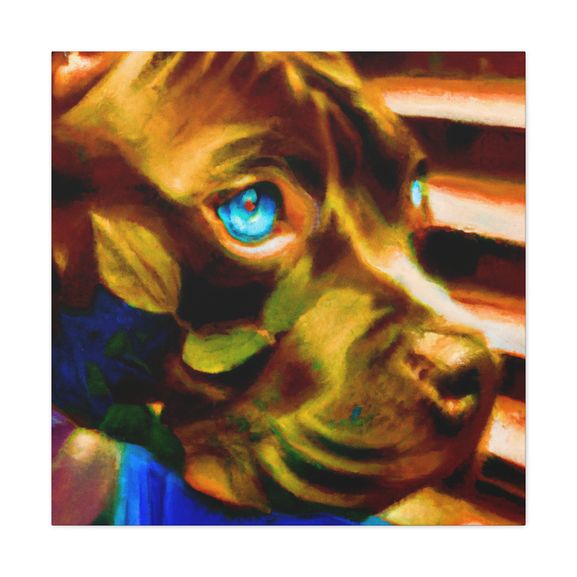 This canvas art is both captivating and unique! A young brown pit bull looks with longing out the window surrounded by a surreal yet calming atmosphere. Every brushstroke brings life to the gentle and emotive figure, setting this piece apart from the usual abstract art. Add an artistic touch to any wall and admire this stunning scene. #abstractpainting #canvasart #pitbulls #dog #browndog #paintedcanvas #modernart #homedecor #animalpainting #surrealart #wallart