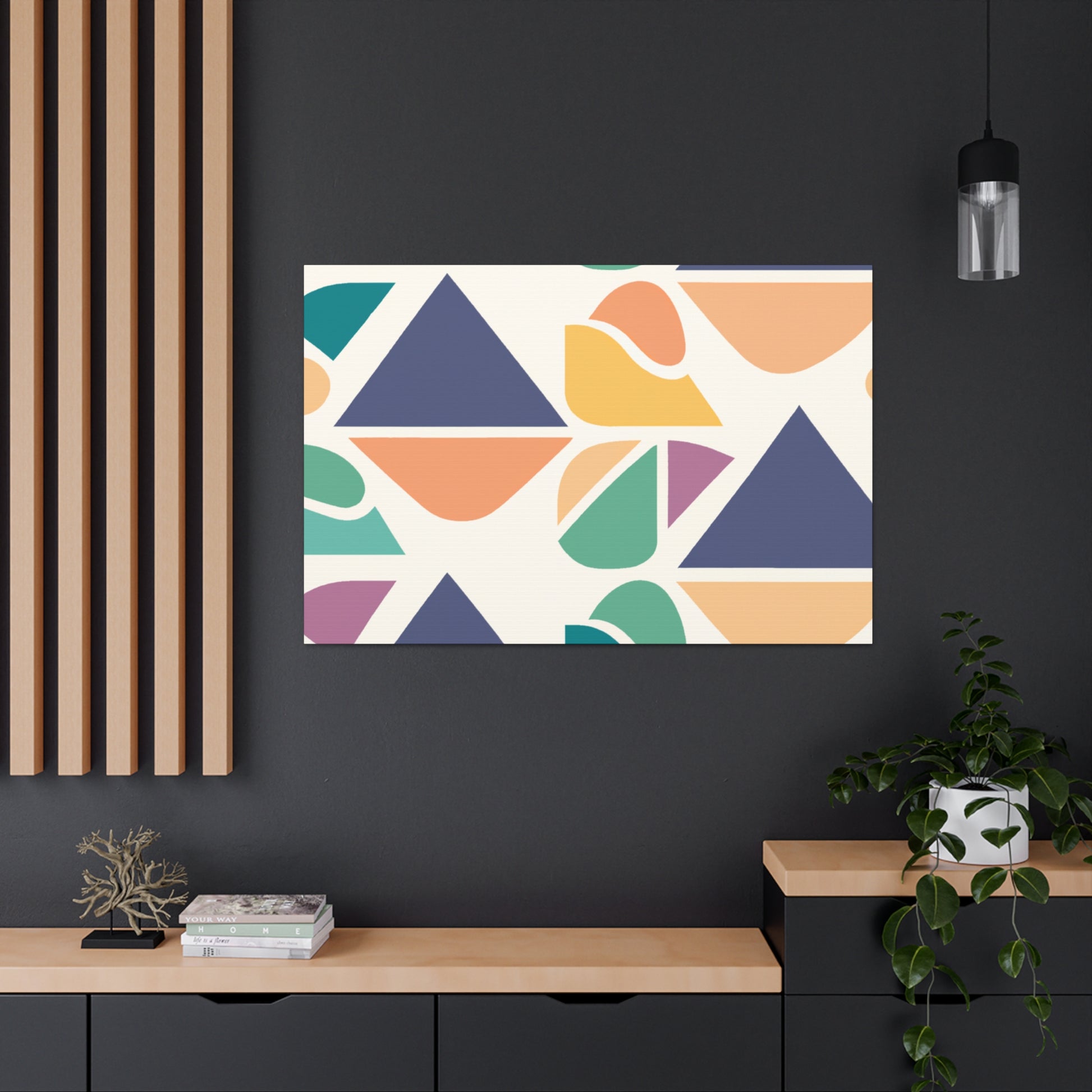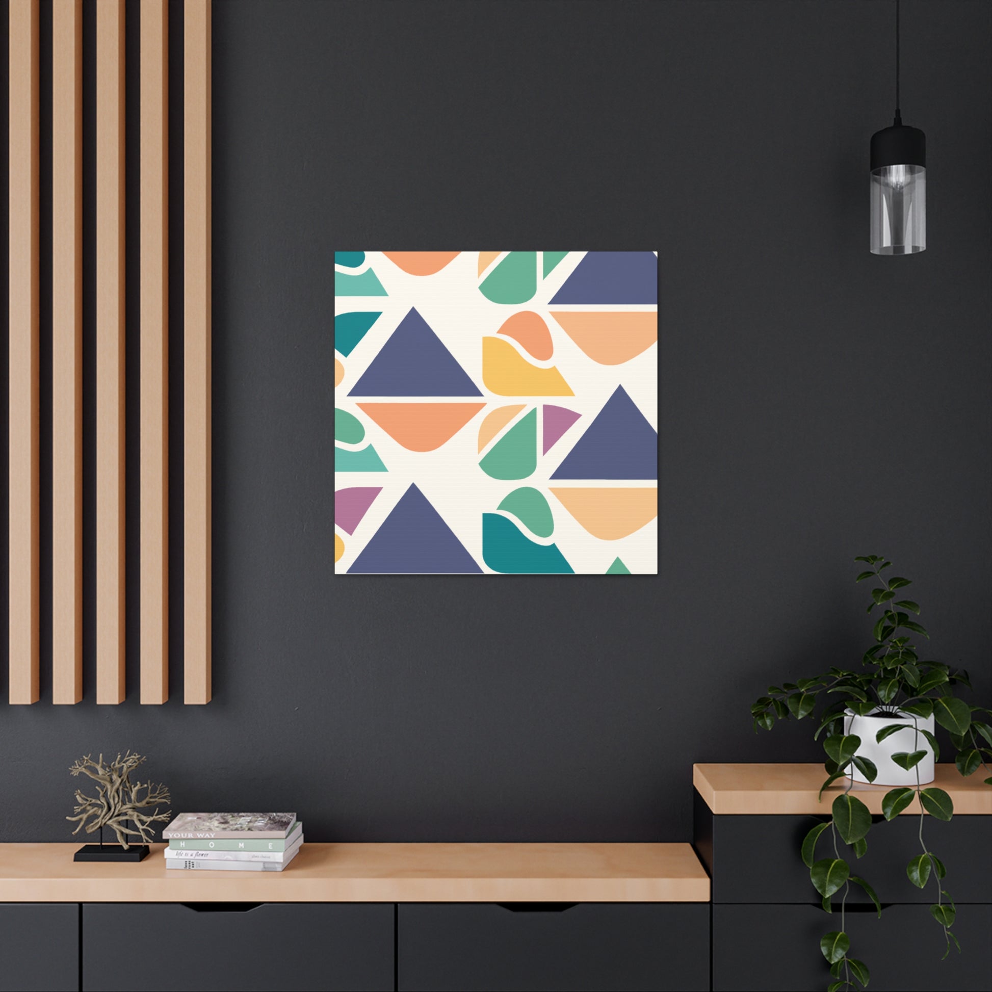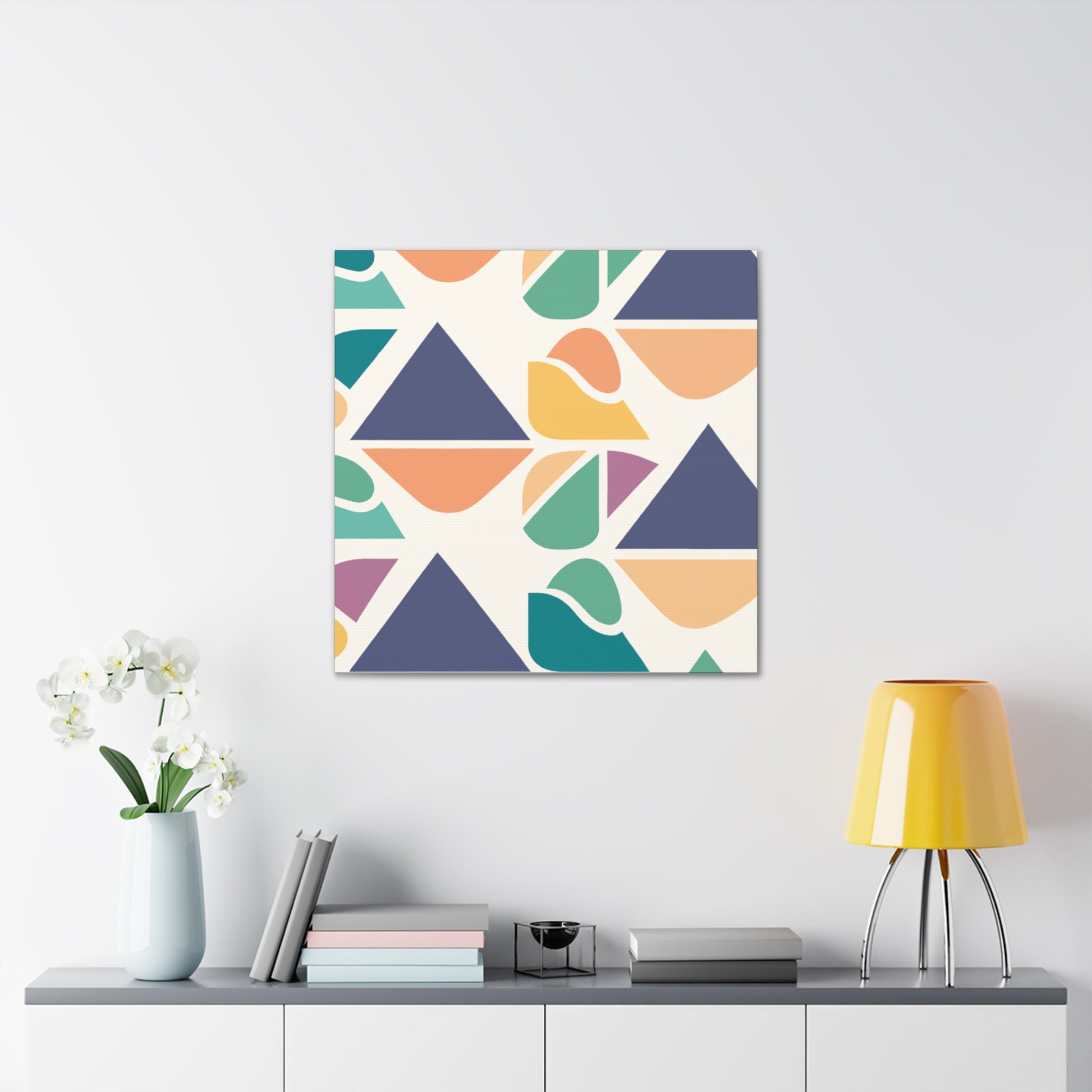 This painting, with its bold and vibrant abstract geometric visuals and cool colors, will bring a pop of color to any living space. This stylish piece is perfect to give your bedroom or living room a contemporary update. Changing the atmosphere of an entire space in an instant, this statement-making canvas art will be a great focal point for any room. Show off your love for modern art and make your home truly yours! #abstractart #abstractpainting #abstractgeometric #vibrantart #modernart #coolcolors #canvaspainting #wallart #enhanceyourspace #livingroomdecor #homedecor