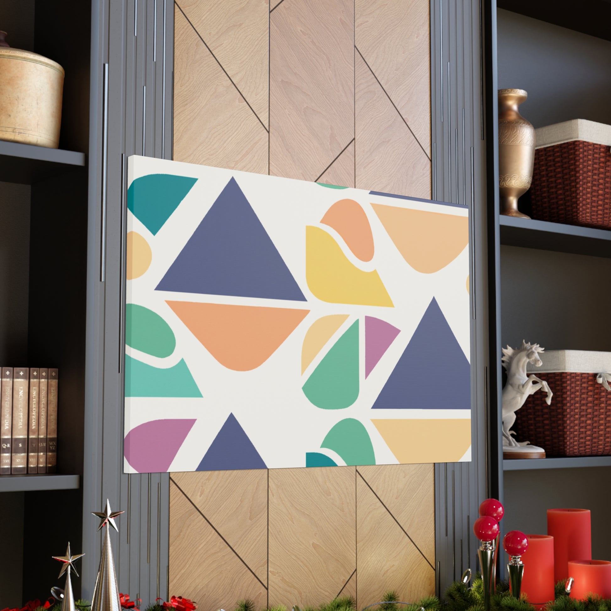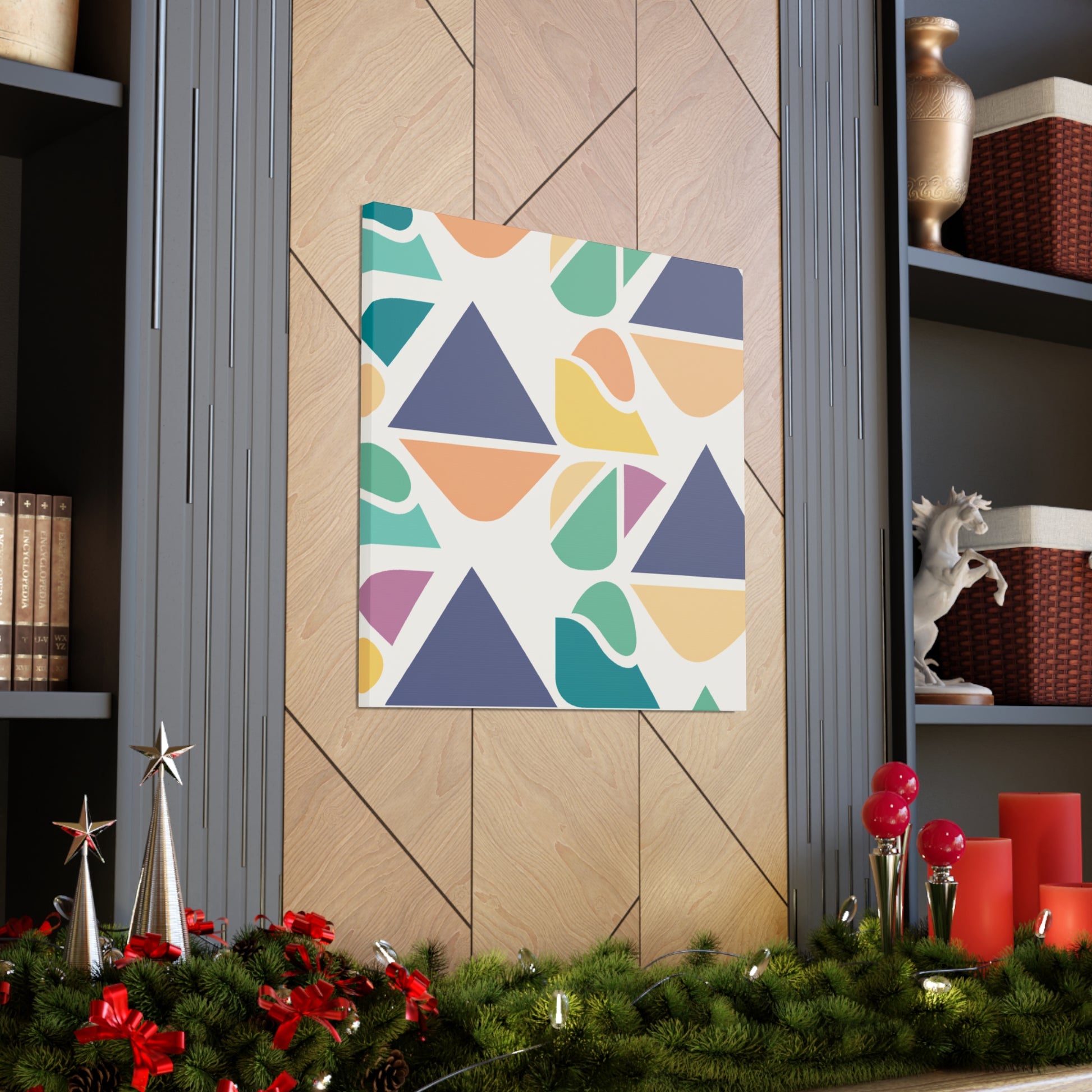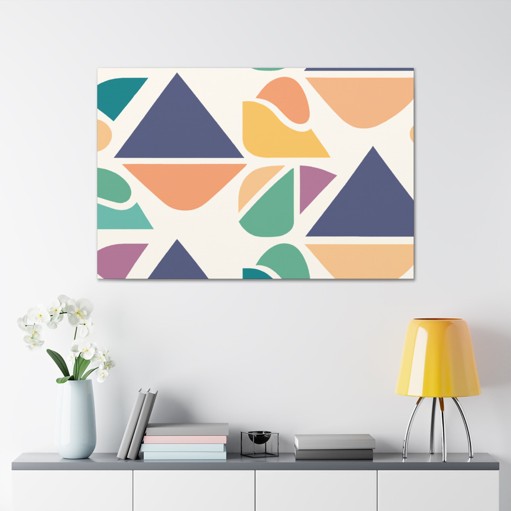 This painting, with its bold and vibrant abstract geometric visuals and cool colors, will bring a pop of color to any living space. This stylish piece is perfect to give your bedroom or living room a contemporary update. Changing the atmosphere of an entire space in an instant, this statement-making canvas art will be a great focal point for any room. Show off your love for modern art and make your home truly yours! #abstractart #abstractpainting #abstractgeometric #vibrantart #modernart #coolcolors #canvaspainting #wallart #enhanceyourspace #livingroomdecor #homedecor