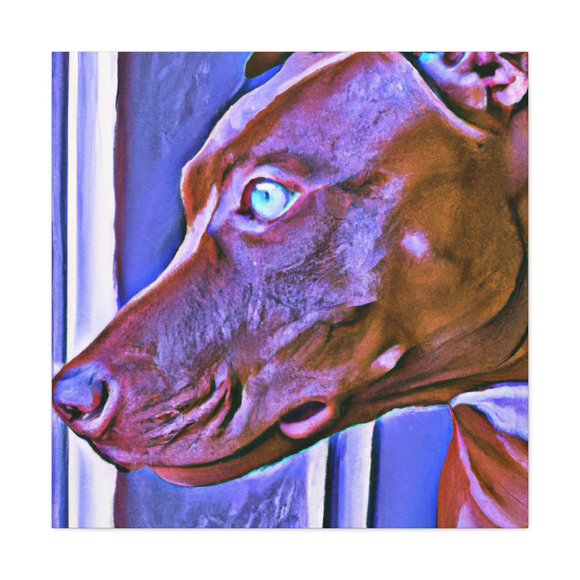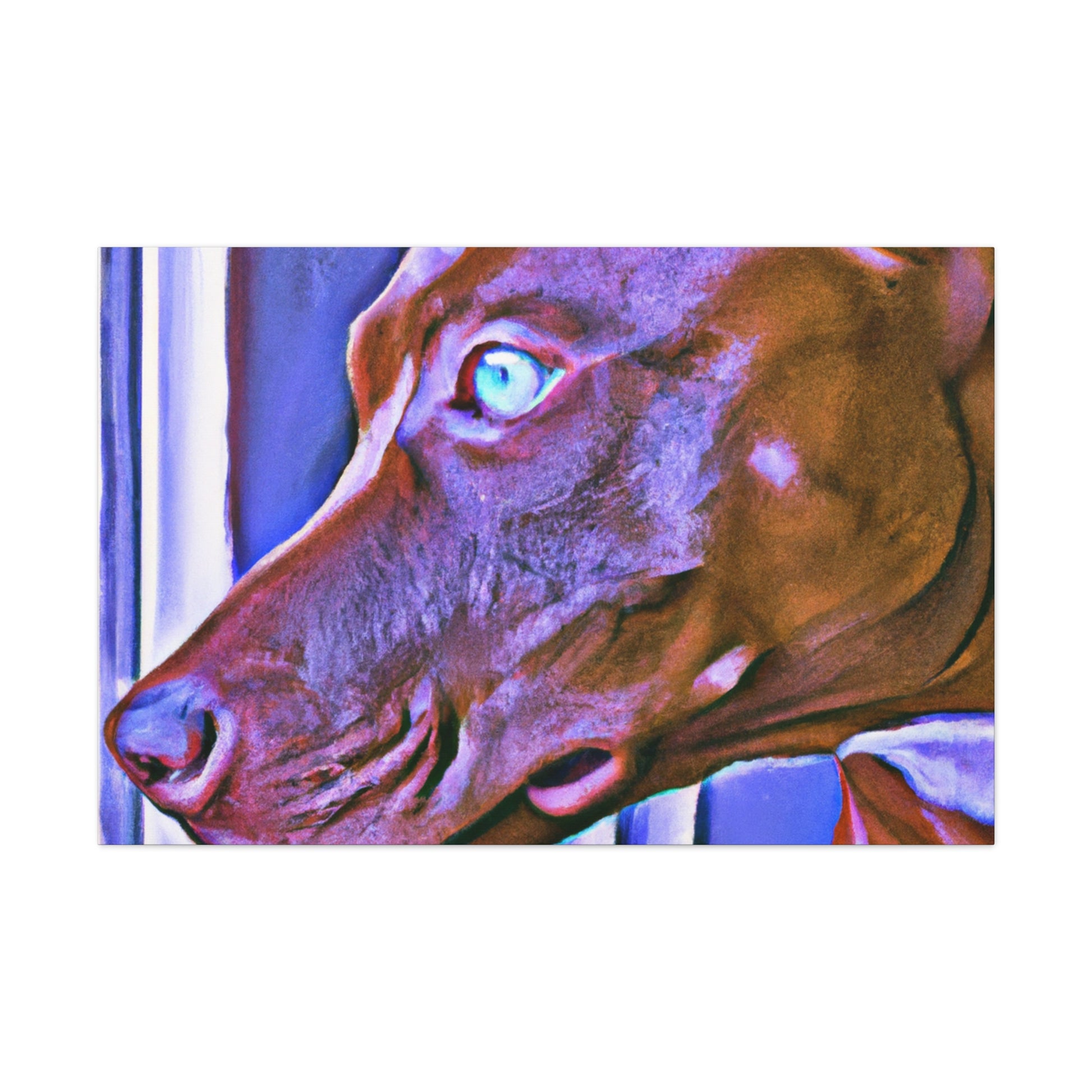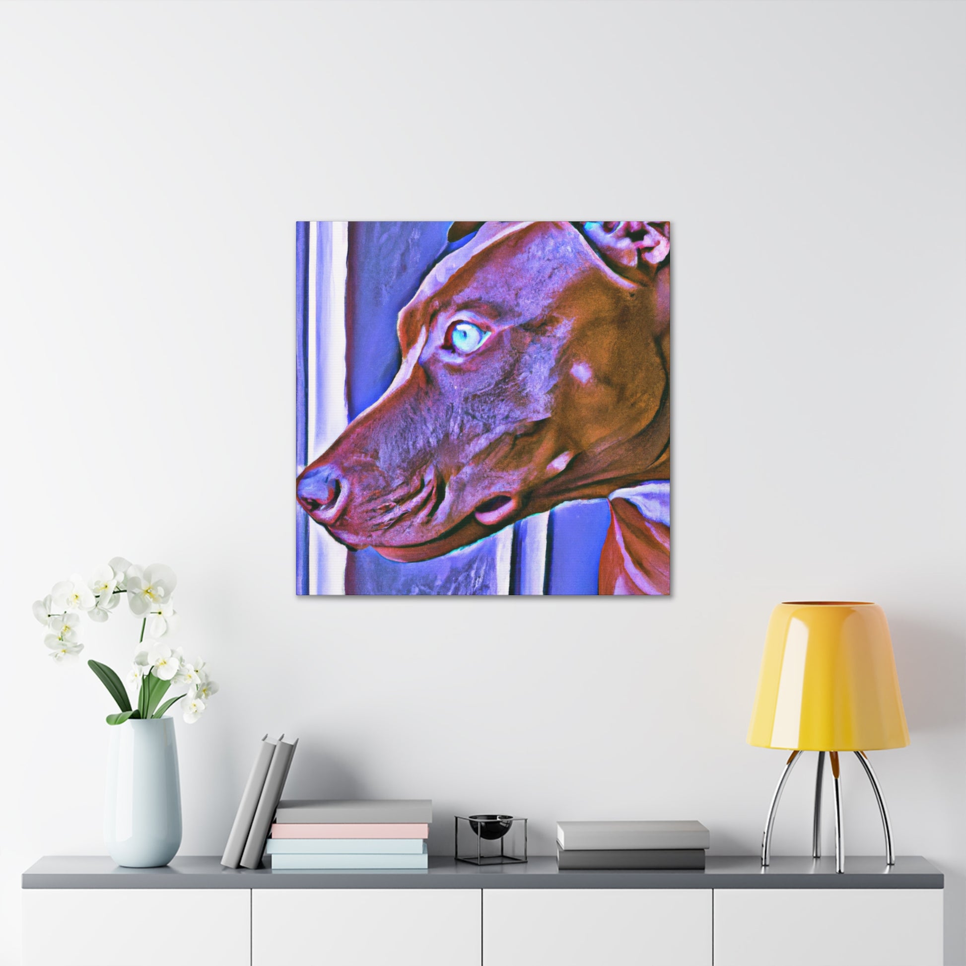 This canvas of abstract painting blends the beauty of realism and surrealism, presenting a young brown pit bull looking out a window with the hint of sadness in his eyes against a trippy landscape. Paintings like this can enhance any room, bringing vivid colours and a classy aesthetic. #abstractart #youngdog #pitbull #realism #surrealism #contemporaryart #vividcolours #classyaesthetic #canvas #windowview #sadnessinseyes