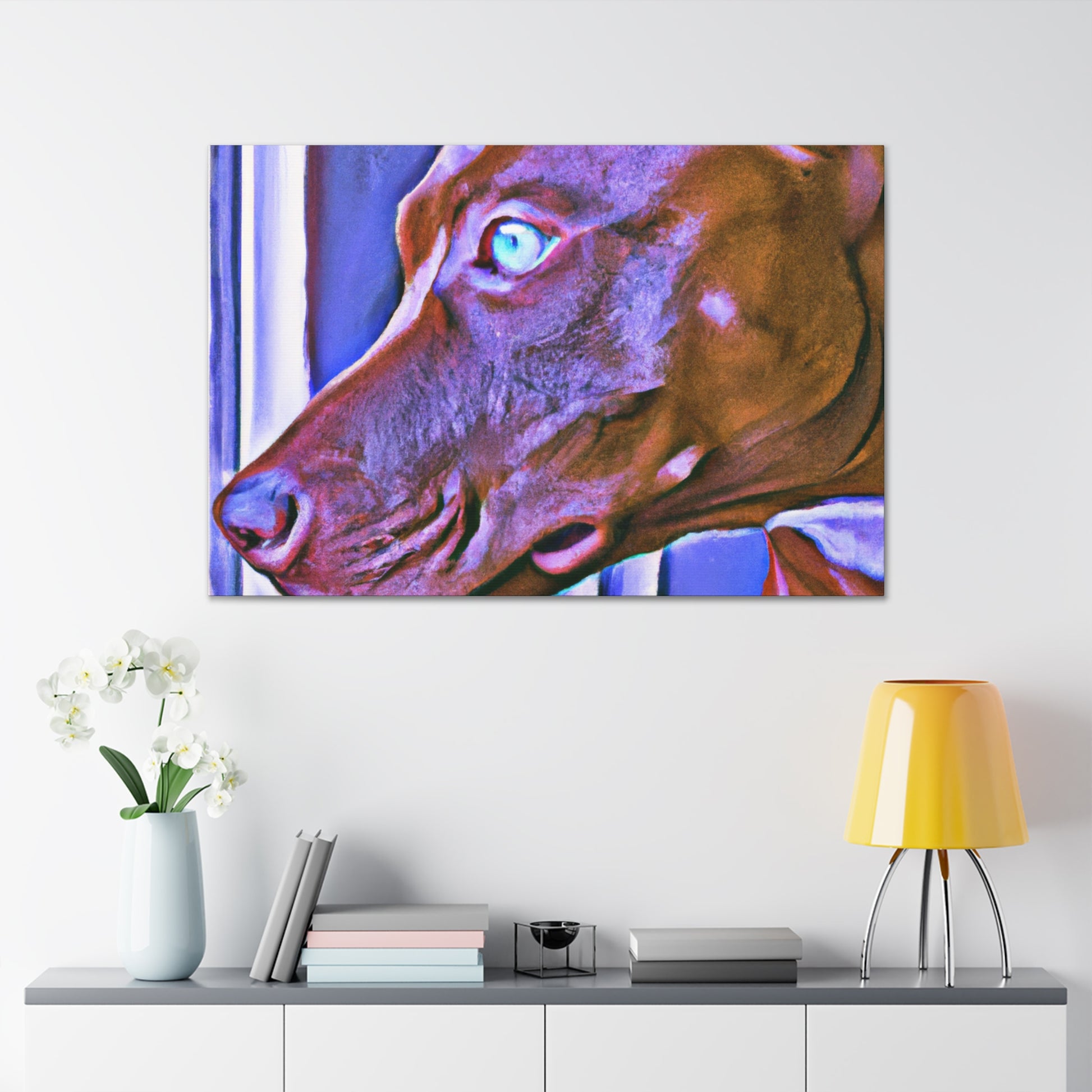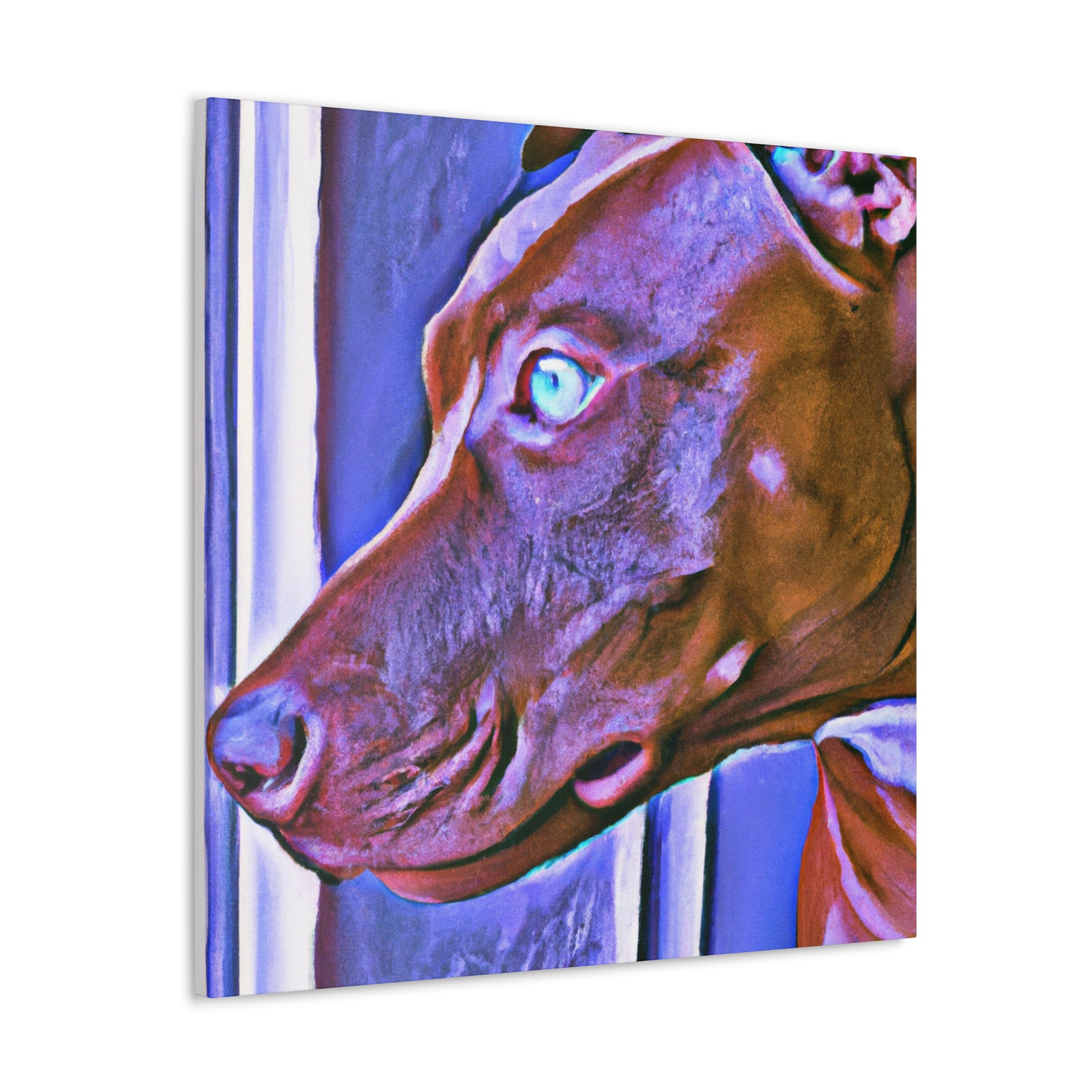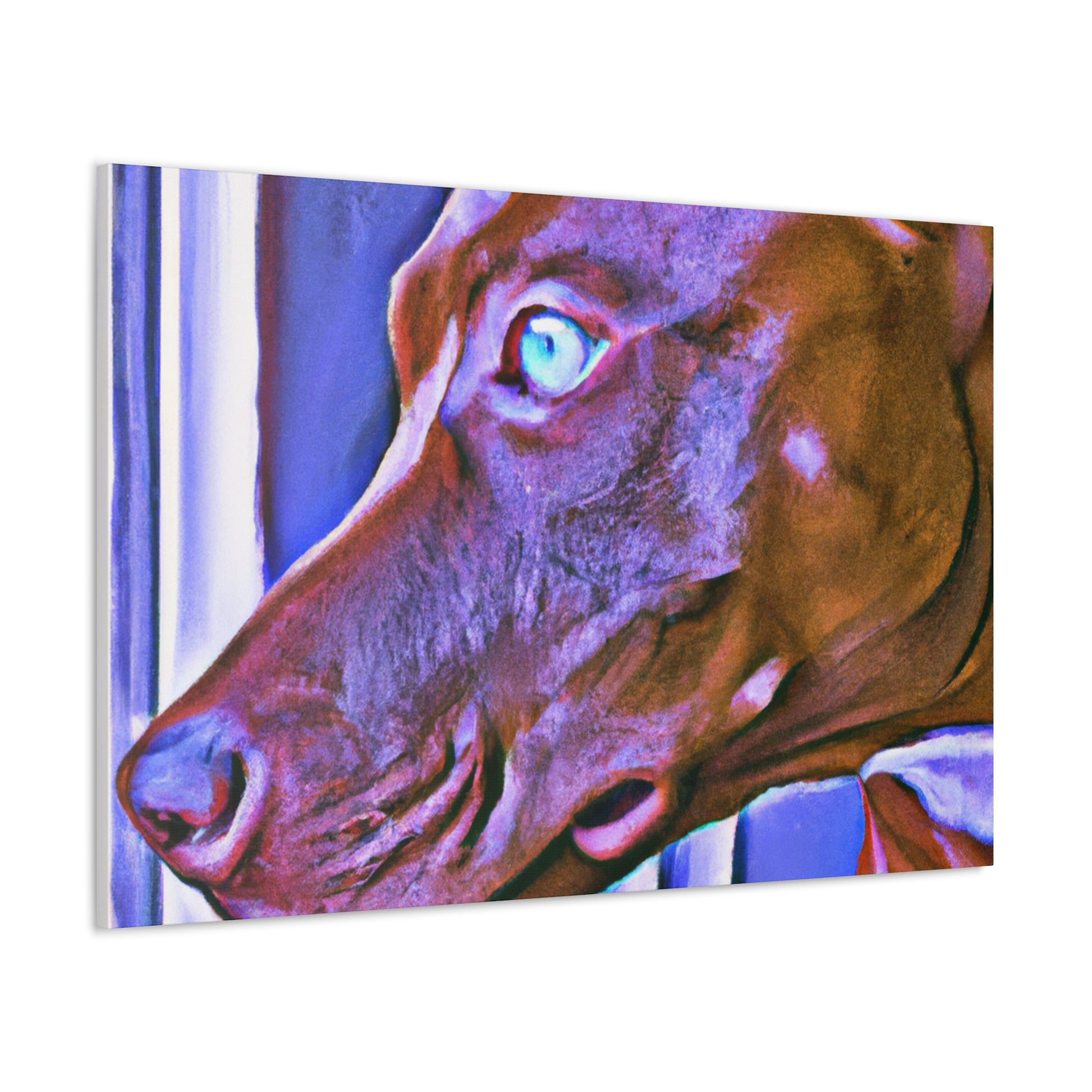 This canvas of abstract painting blends the beauty of realism and surrealism, presenting a young brown pit bull looking out a window with the hint of sadness in his eyes against a trippy landscape. Paintings like this can enhance any room, bringing vivid colours and a classy aesthetic. #abstractart #youngdog #pitbull #realism #surrealism #contemporaryart #vividcolours #classyaesthetic #canvas #windowview #sadnessinseyes