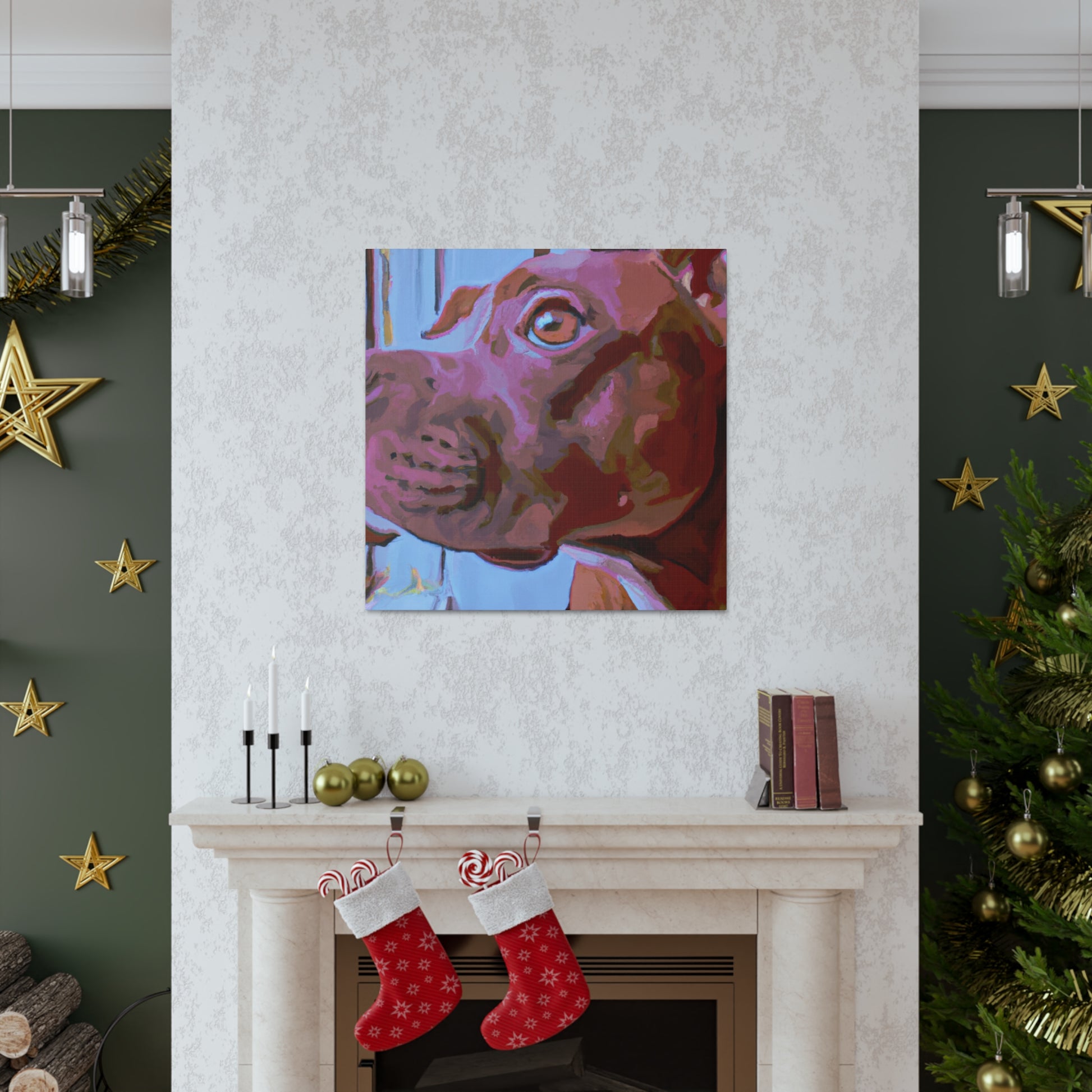 This abstract canvas will take your breath away! Abstract texture and color combined with an unmistakably hip young brown pit bull give this canvas a unique zen-like focus. Other features of the painting such as the window and the ambient sillouhettes bring a surreal feel to the the overall abstract experience. Make this your center piece and start conversations. #abstractart #cozycorner #trippypainting #doglovers #modernstyle #abstractpaint #doggylife #homeinterior #pitbulllovers #abstractarts #artdeco