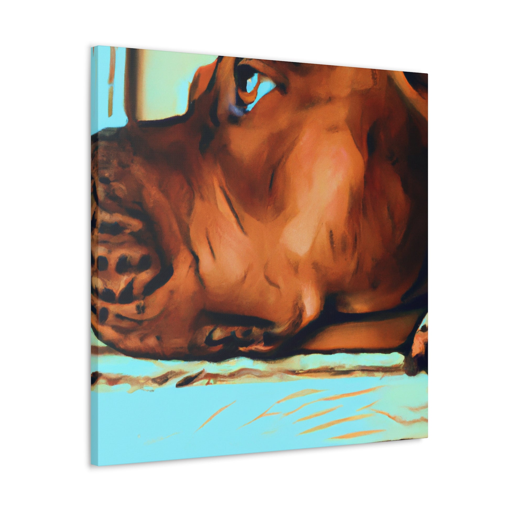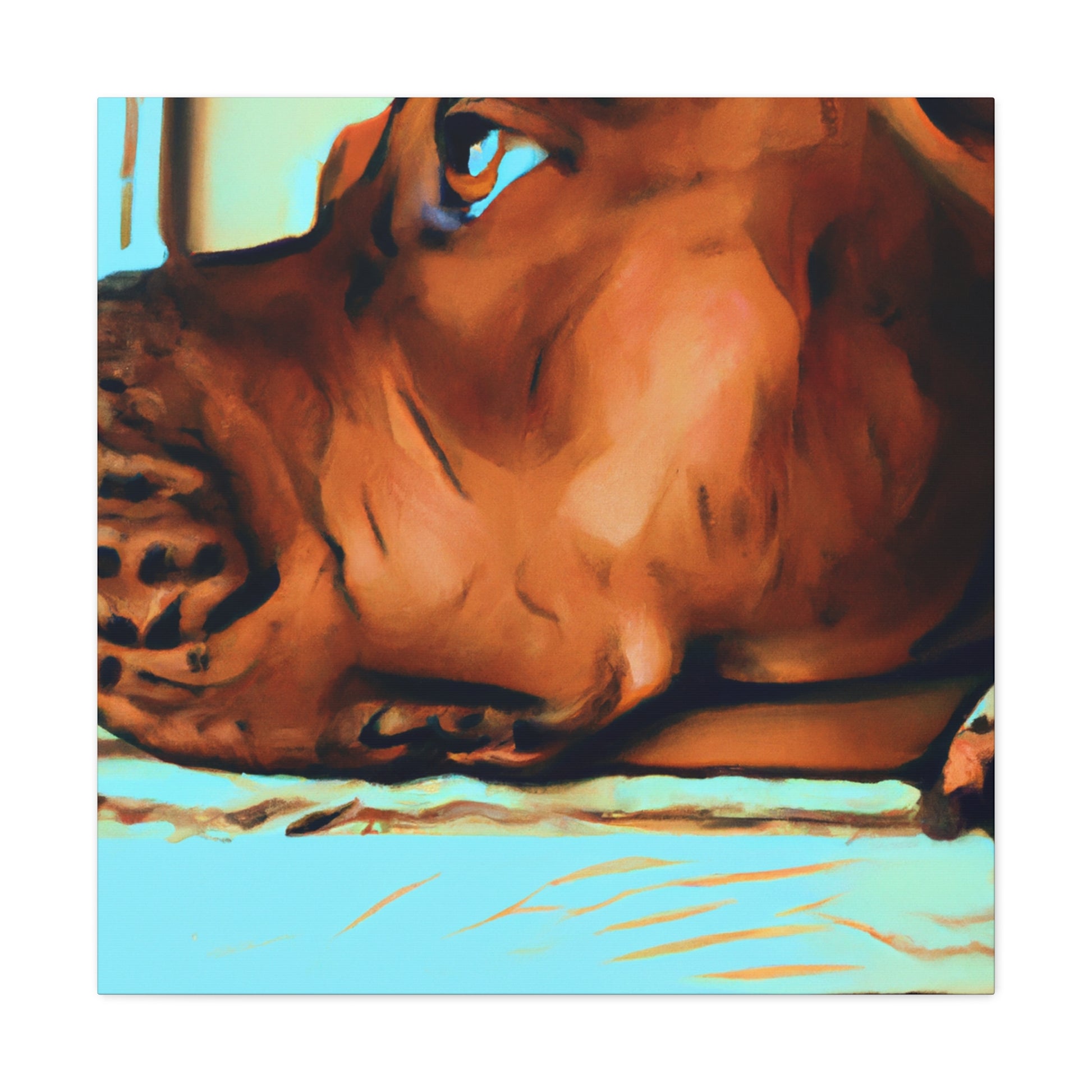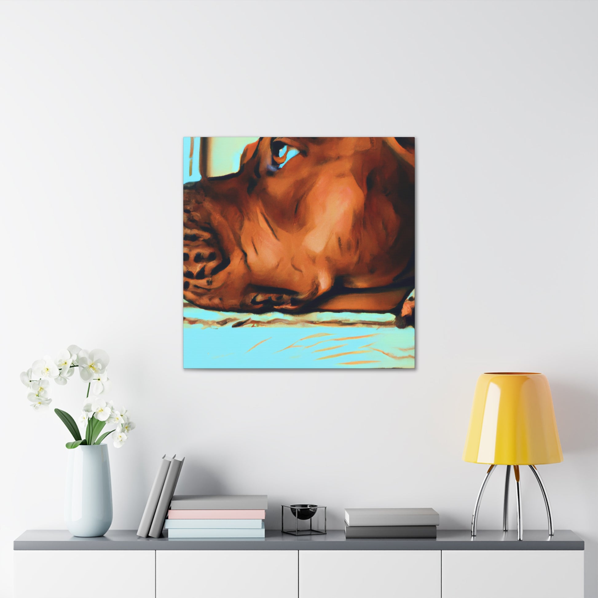 This abstract painting captures the innocence and vibrant future of a young brown Pit Bull looking out the window. The canvas is a truly one-of-a-kind, with a realistically painted dog and a dreamy abstract background surrounding him. The tones are a combination of soothing blues and warm yellows, giving the painting a sense of energy and life. Hang this piece to create an eye-catching decorative effect in any room. #abstractart #abstractpainting #painting #dog #pitbull #art #canvas #wallart #decor #homedecor #interiordesign #style