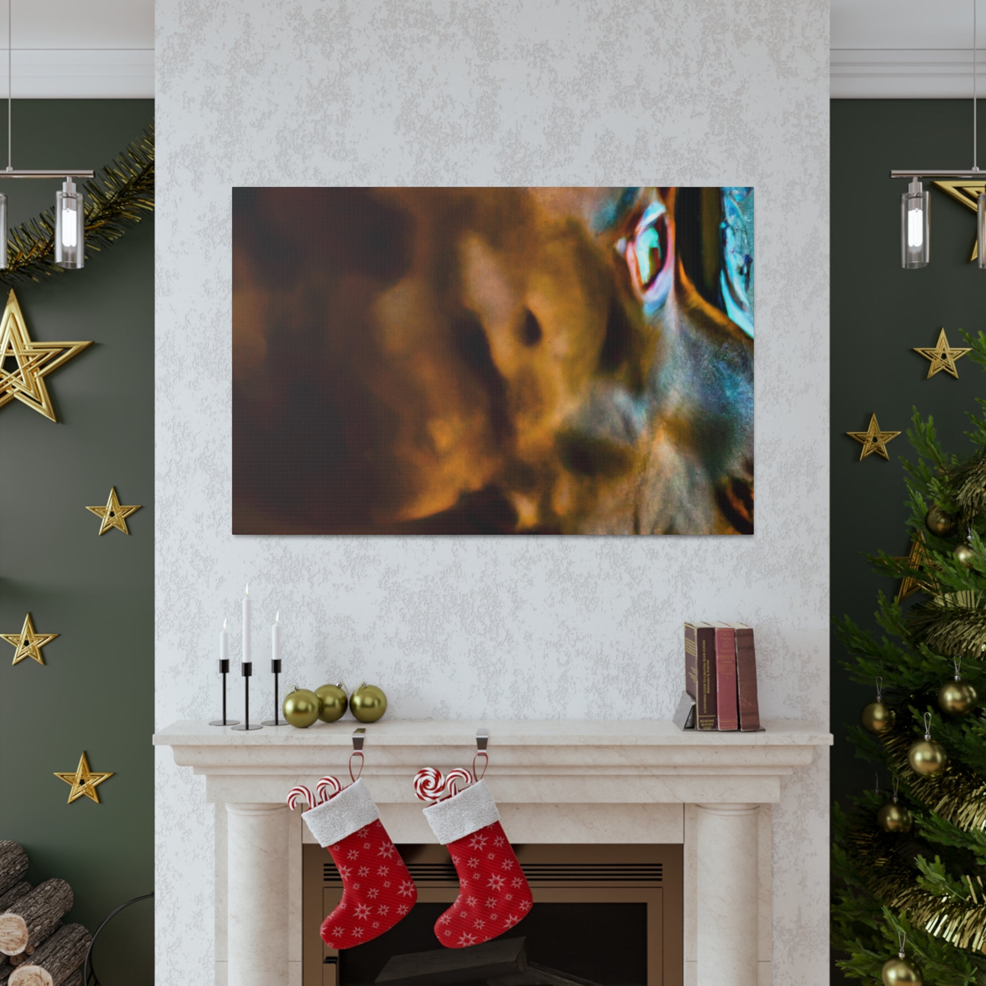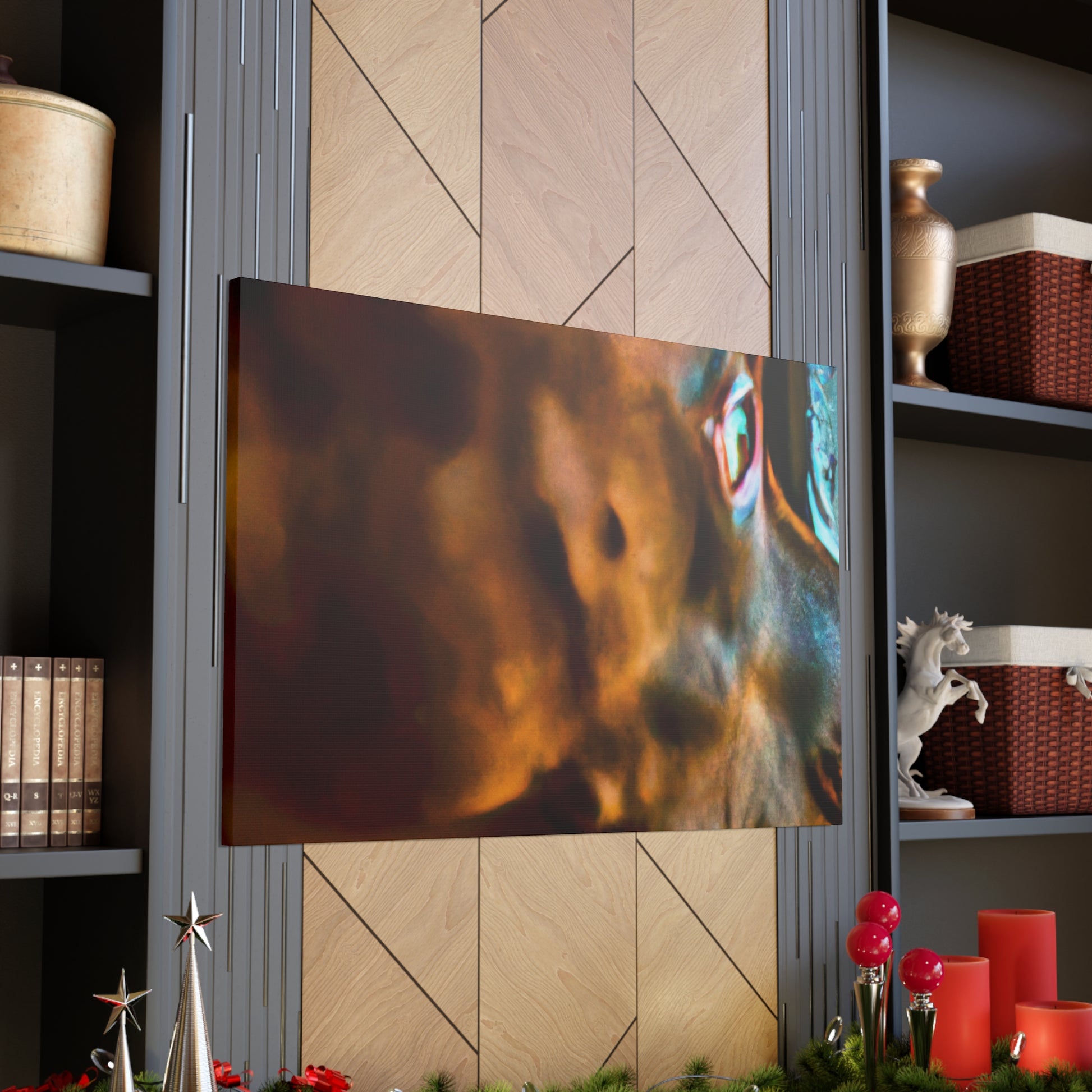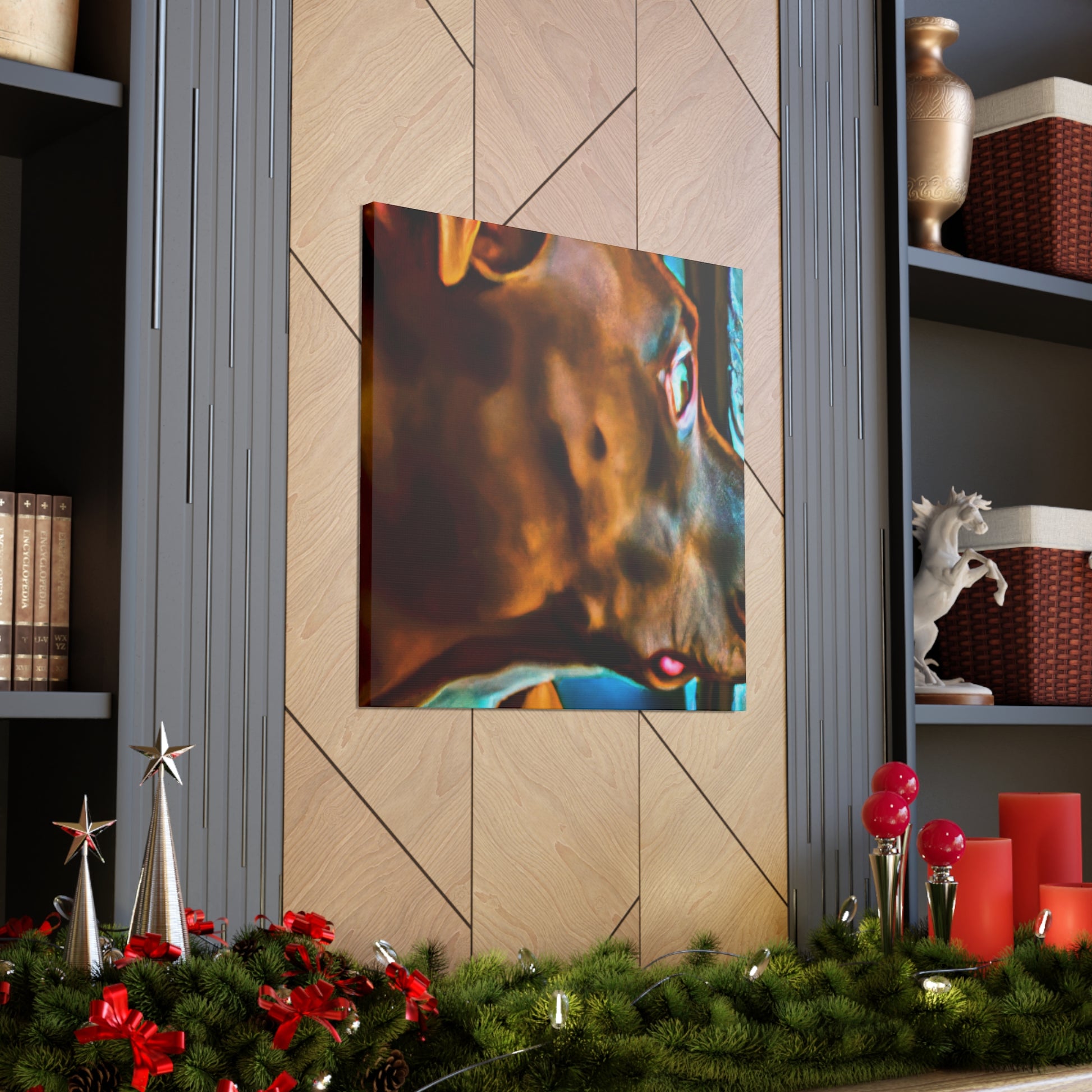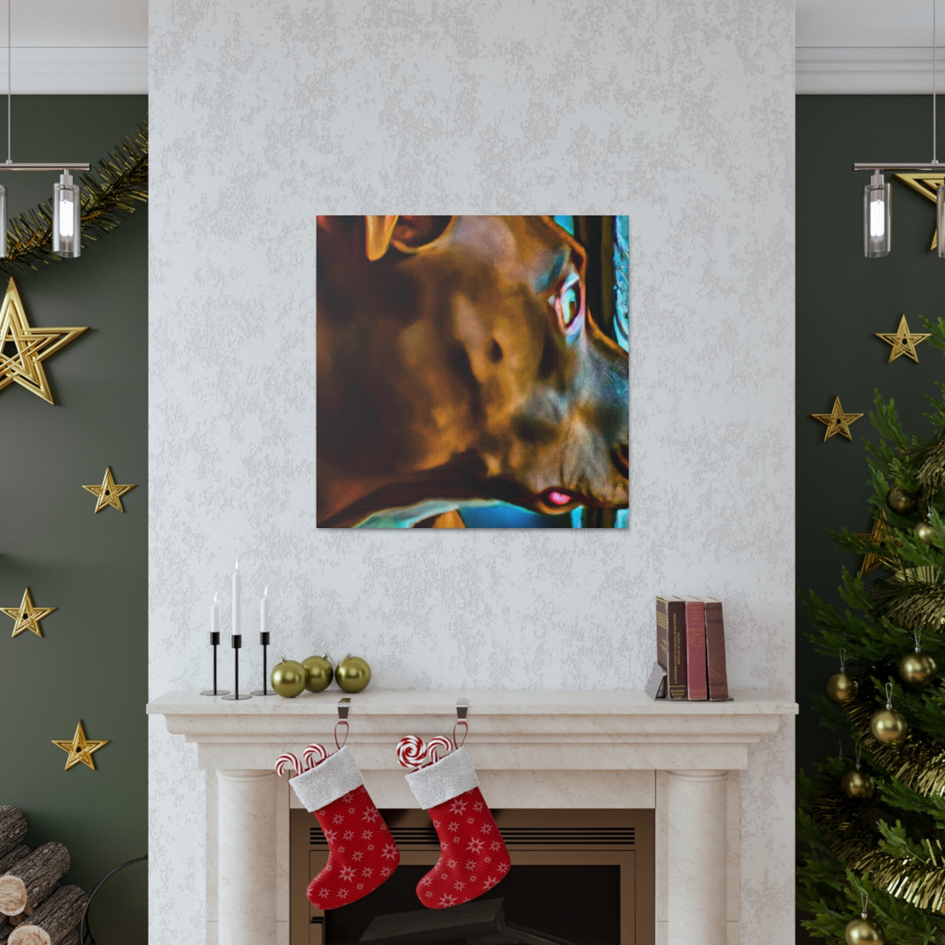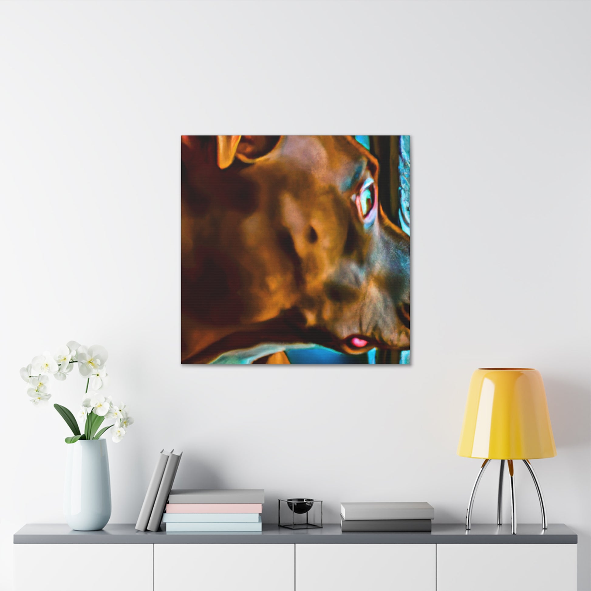 This Contemporary Abstract Canvas is an ode to unconditional love. The soft brown hue of the pit bull coupled with the bright and bold splashes of color provide an awe-inspiring aesthetic. His life-filled eyes look out invitingly to a surreal world beyond the window, giving an air of mystery and intrigue. Hang this piece in your home to evoke a sense of warmth and tranquility. #AbstractArt #ContemporaryArt #PitBullArt #CanvasArt #ModernArt #WallDecor #AbstractPainting #AbstractDog #SurrealArt #AbstractRealism #ColorfulDogArt