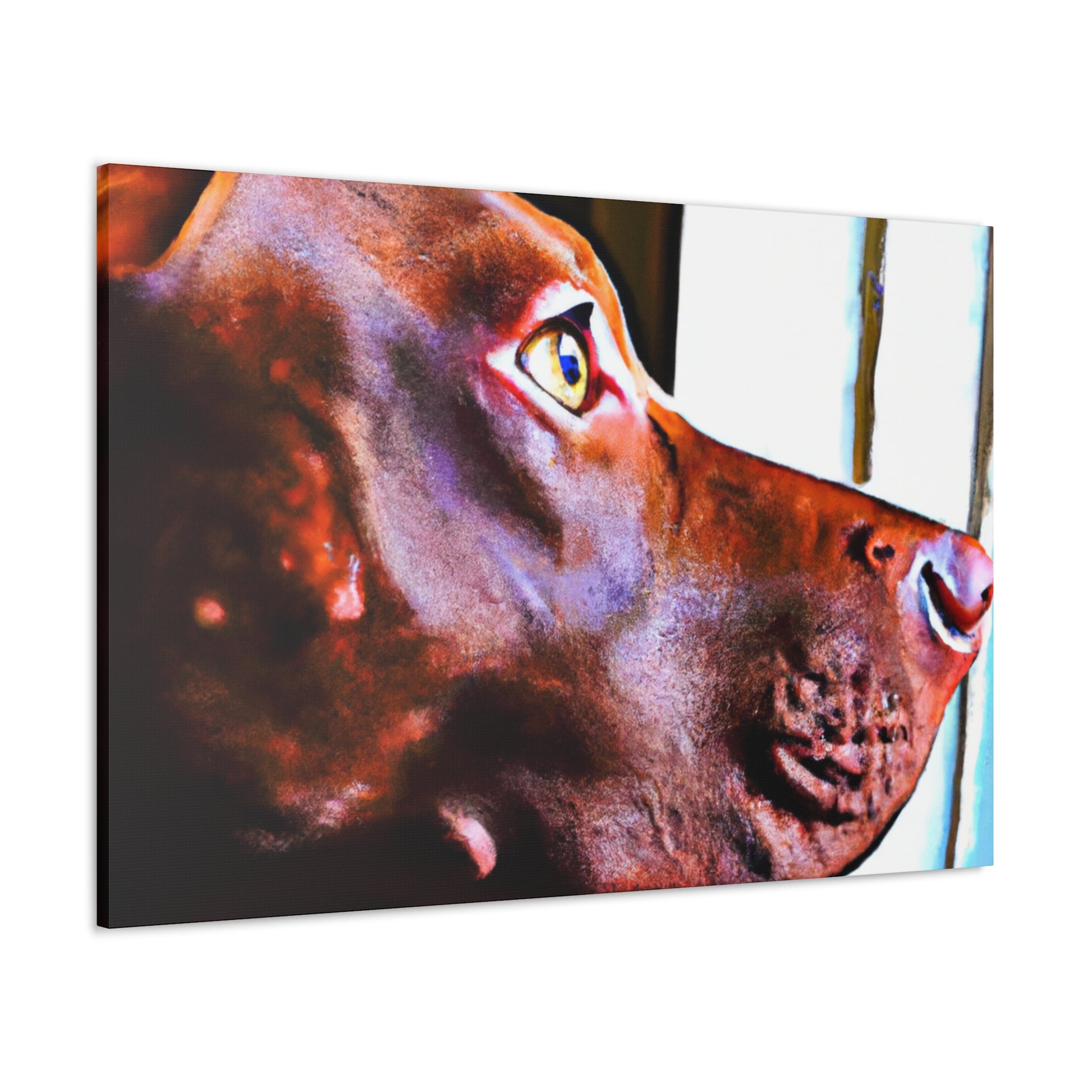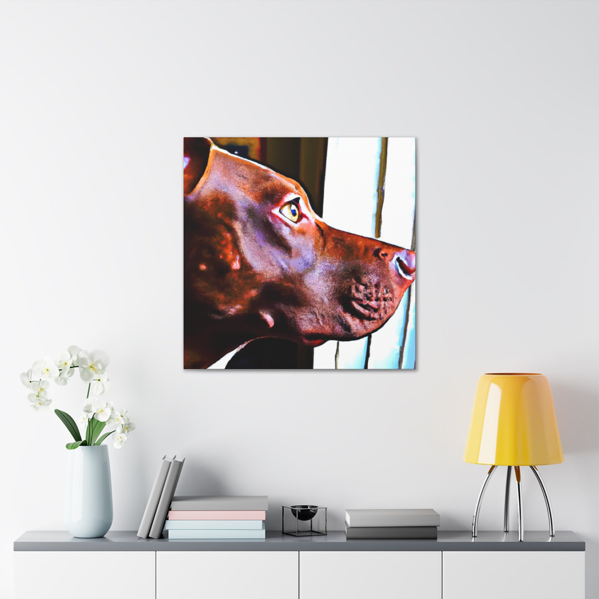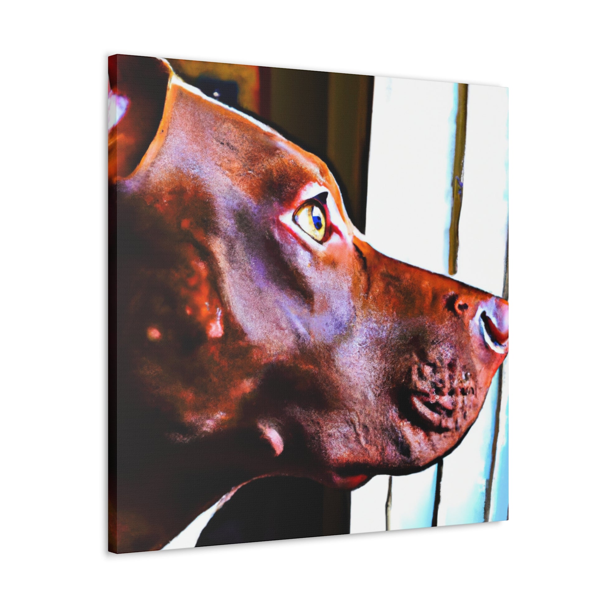 This one-of-a-kind abstract, contemporary painting captures the beautiful innocence and life of a young brown pit bull looking lovingly out the window. The vivid blues, pinks, and purples bring a dreamy and creative element to this canine friend, while the brown dog stands captivating with his life-filled eyes. #abstract #painting #canvas #dog #art #contemporary #brown #pitbull #window #innocence #vibrant #modernart