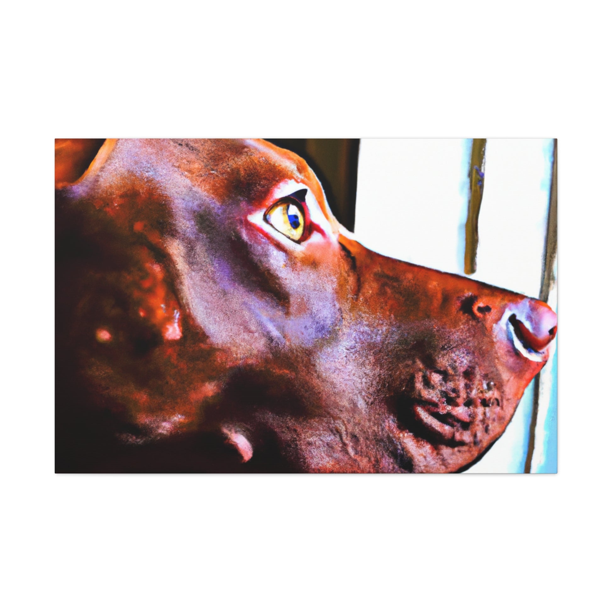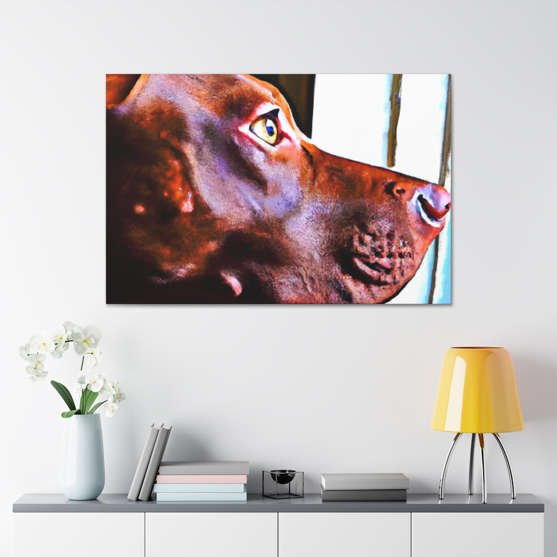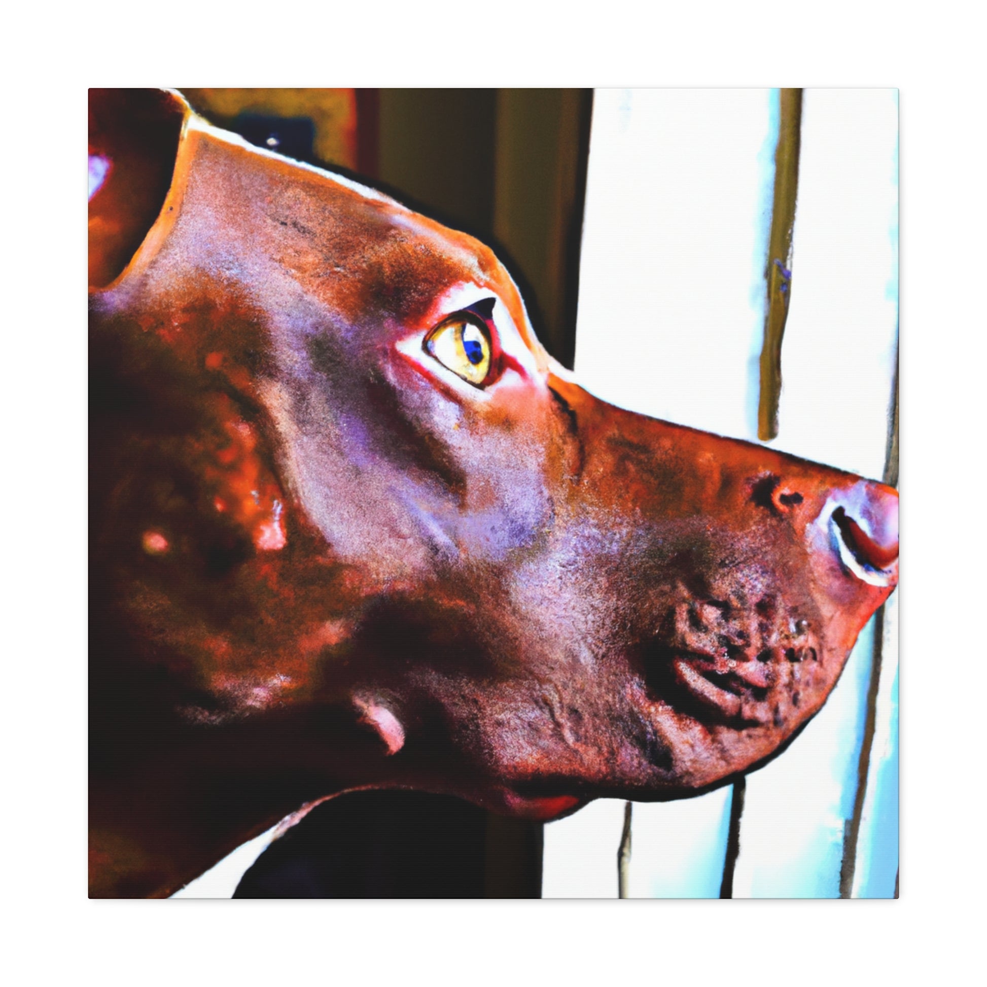 This one-of-a-kind abstract, contemporary painting captures the beautiful innocence and life of a young brown pit bull looking lovingly out the window. The vivid blues, pinks, and purples bring a dreamy and creative element to this canine friend, while the brown dog stands captivating with his life-filled eyes. #abstract #painting #canvas #dog #art #contemporary #brown #pitbull #window #innocence #vibrant #modernart