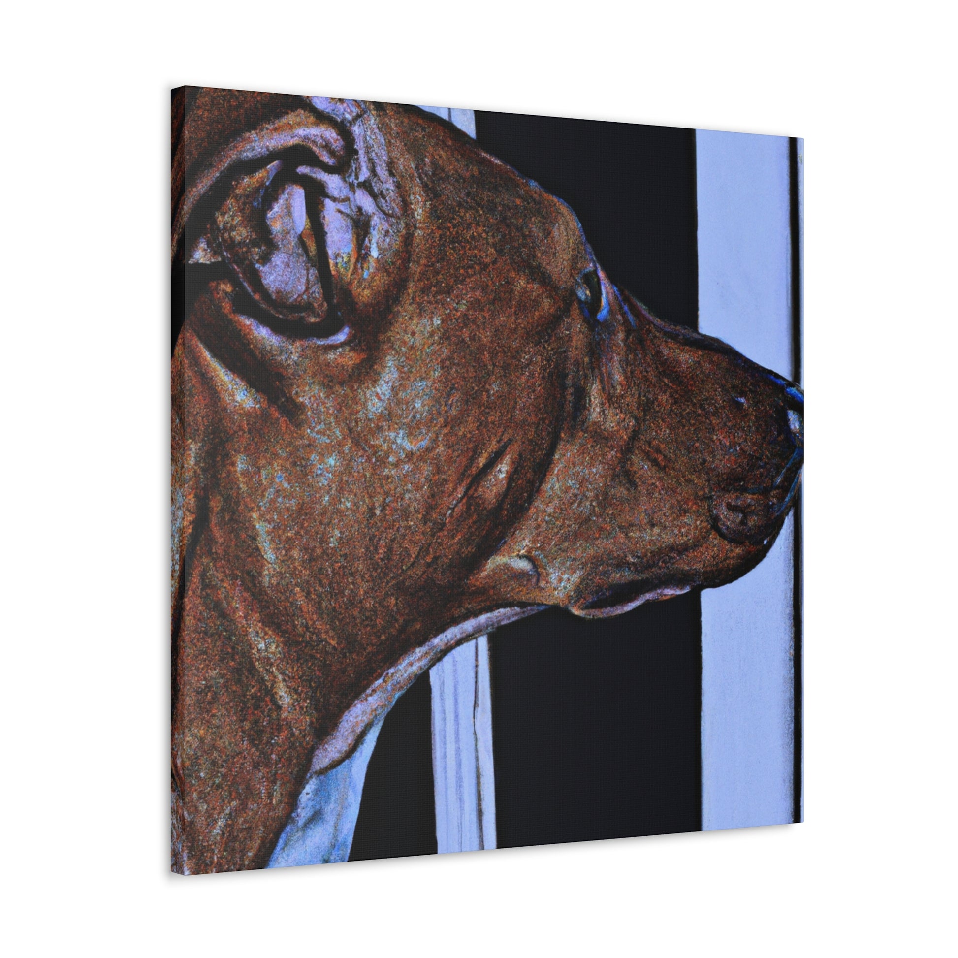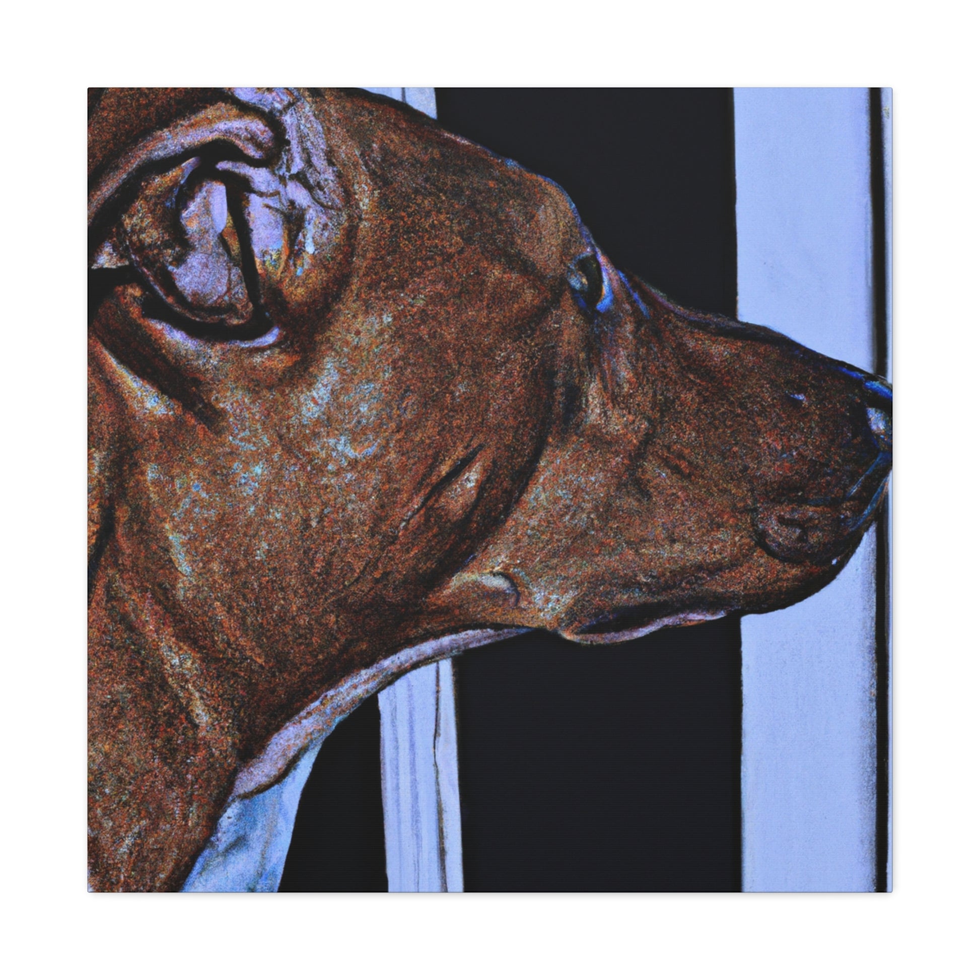 Introducing this unique and one-of-a-kind abstract art canvas! This playful and enchanting piece portrays a young brown pit bull looking out a rainbow-colored window with lots of life in his eyes, while the rest of the art is trippy and mesmerizing. It offers a contrast of classical style and modern color. A perfect piece to bring life to any wall! #dog #canvas #color #abstract #pitbull #young #life #rainbow #window #trippy #modern #classy