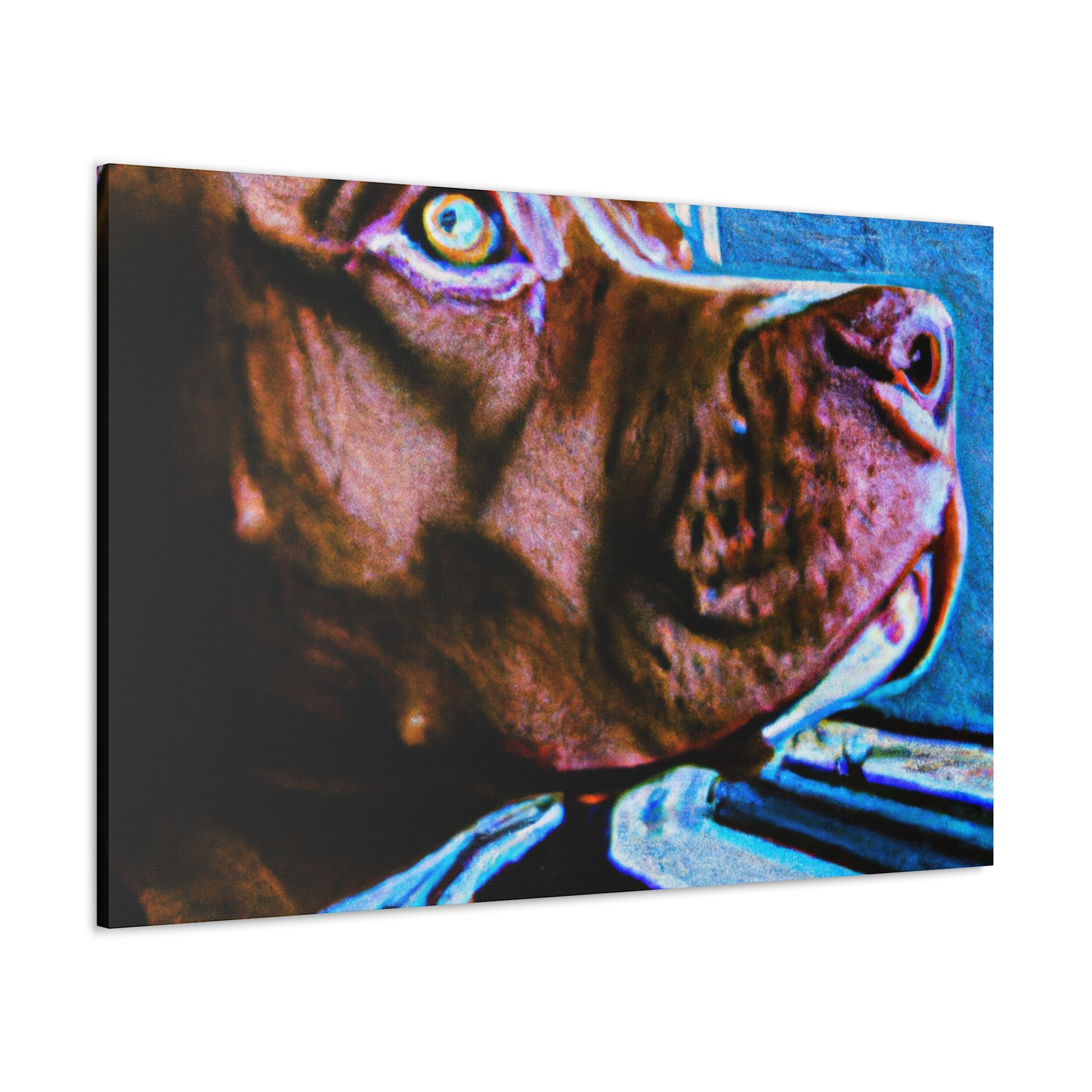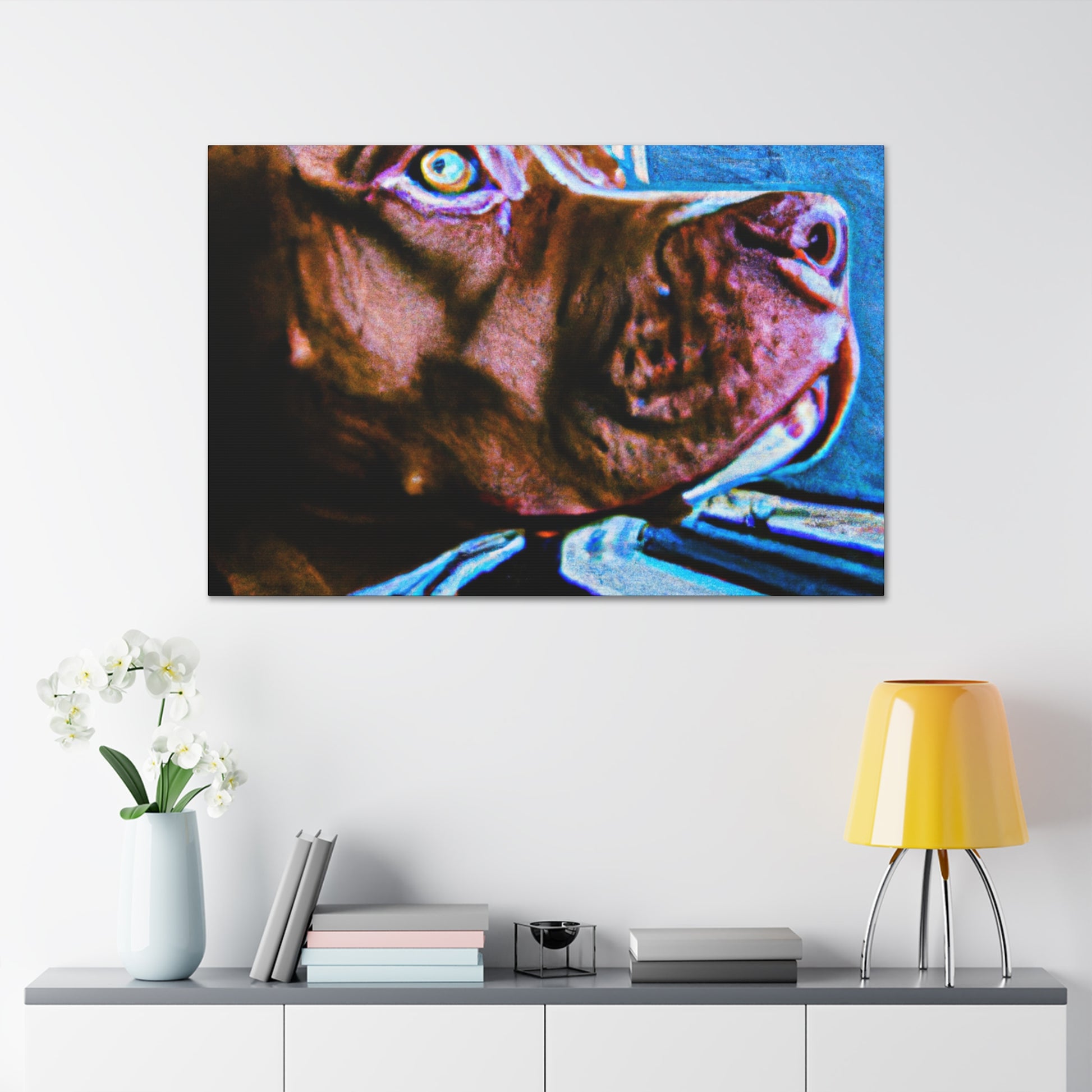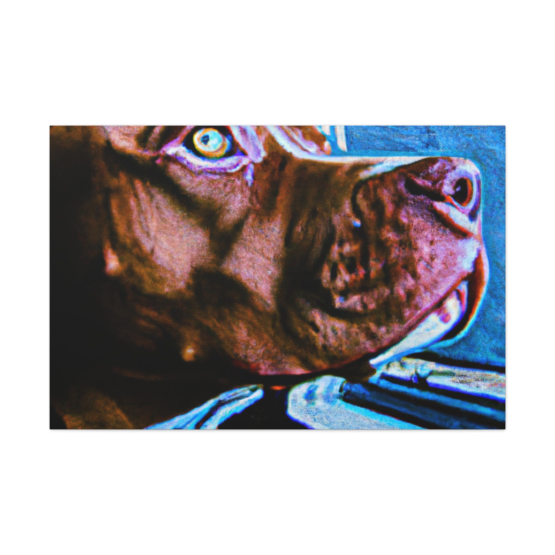 This beautiful painting will add a touch of class to any room. An abstract rendition of a young brown pit bull looking longingly out the window with life in his eyes, the kaleidoscope of colors and sharp edges will capture attention. Trippy shapes and colors fill the scape with the exception of the dog, the only still point in the painting. Dare to dream and grab your own piece of artwork today! #dog #pitbull #abstract #art #painting #canvas #kaleidoscope #trippy #dream #colorful #lively #young