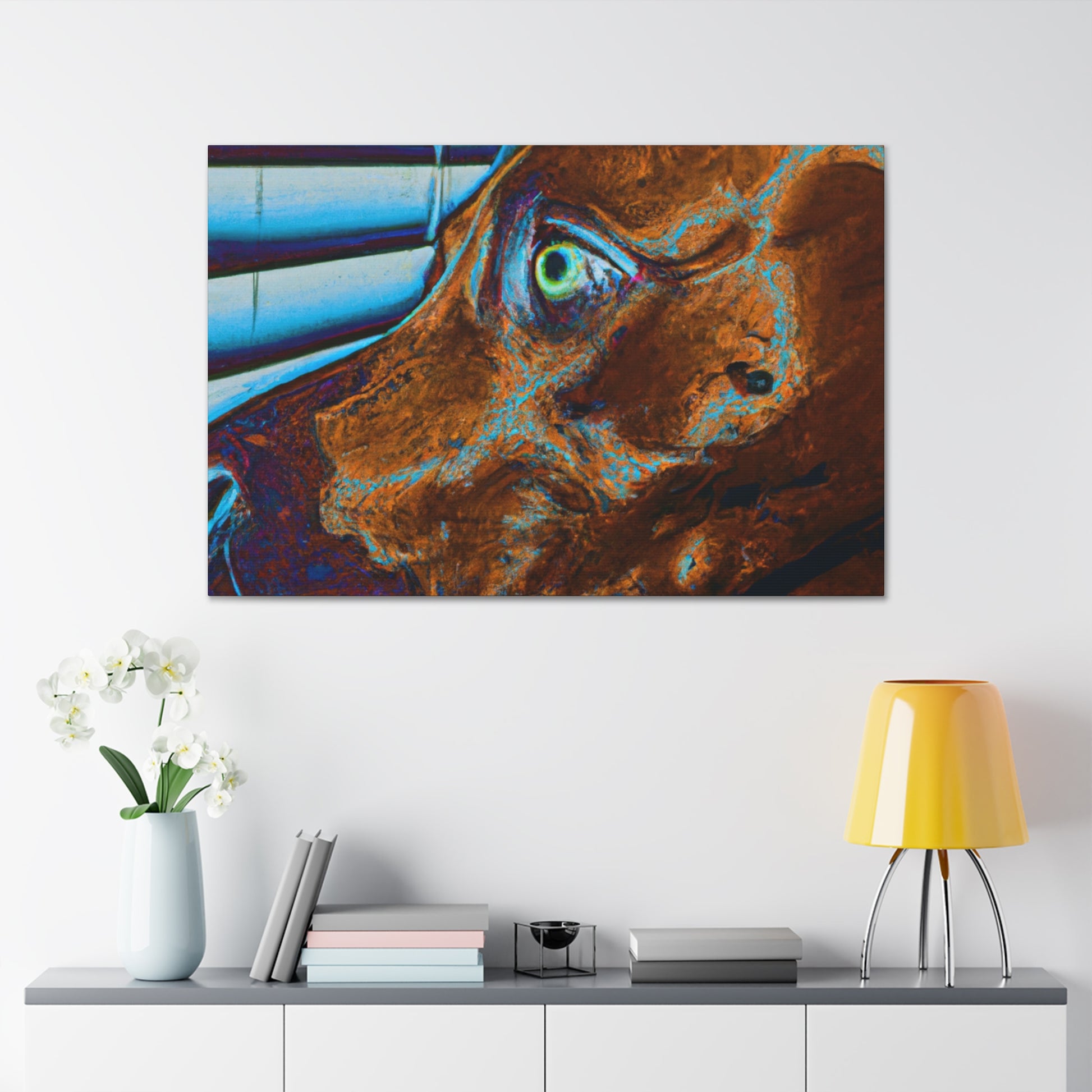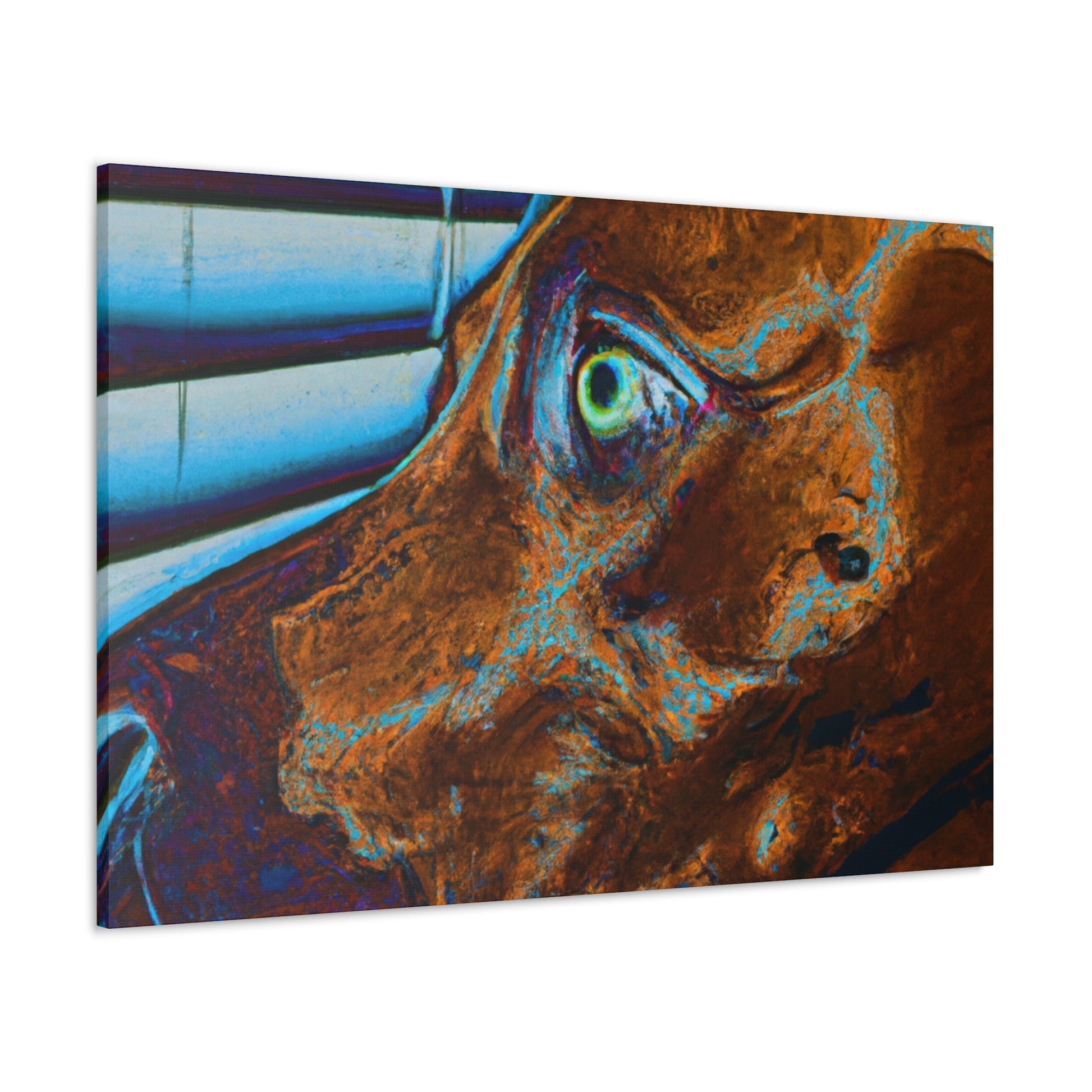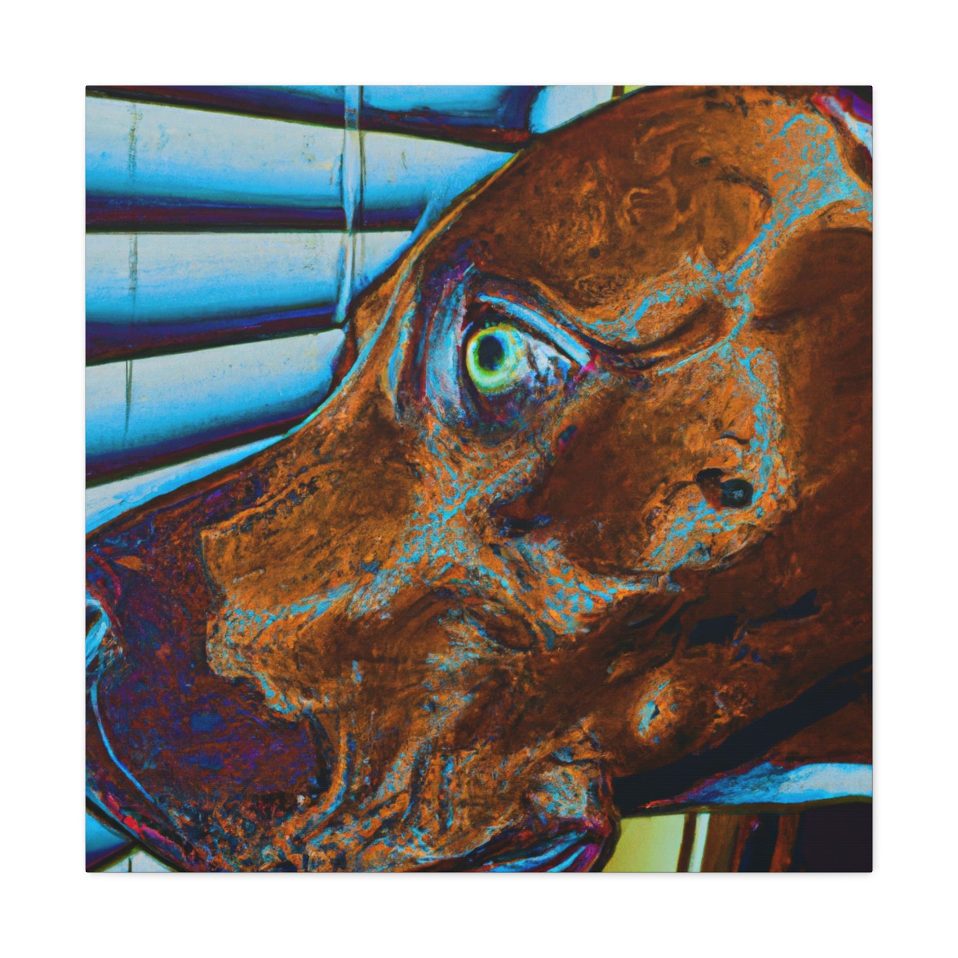 This vibrant painting captures the carefree spirit of youth and joy as a young brown pit bull looks out the window full of life. Bright, abstract colors surround the pup, creating a striking and unique combination of realism and surrealism. It's a classic with an added twist- making it sure to dazzle and add character to any room. #abstract #modernart #painting #canvas #trippy #realism #surrealism #brownpitbull #pet #abstractpaint #doglovers