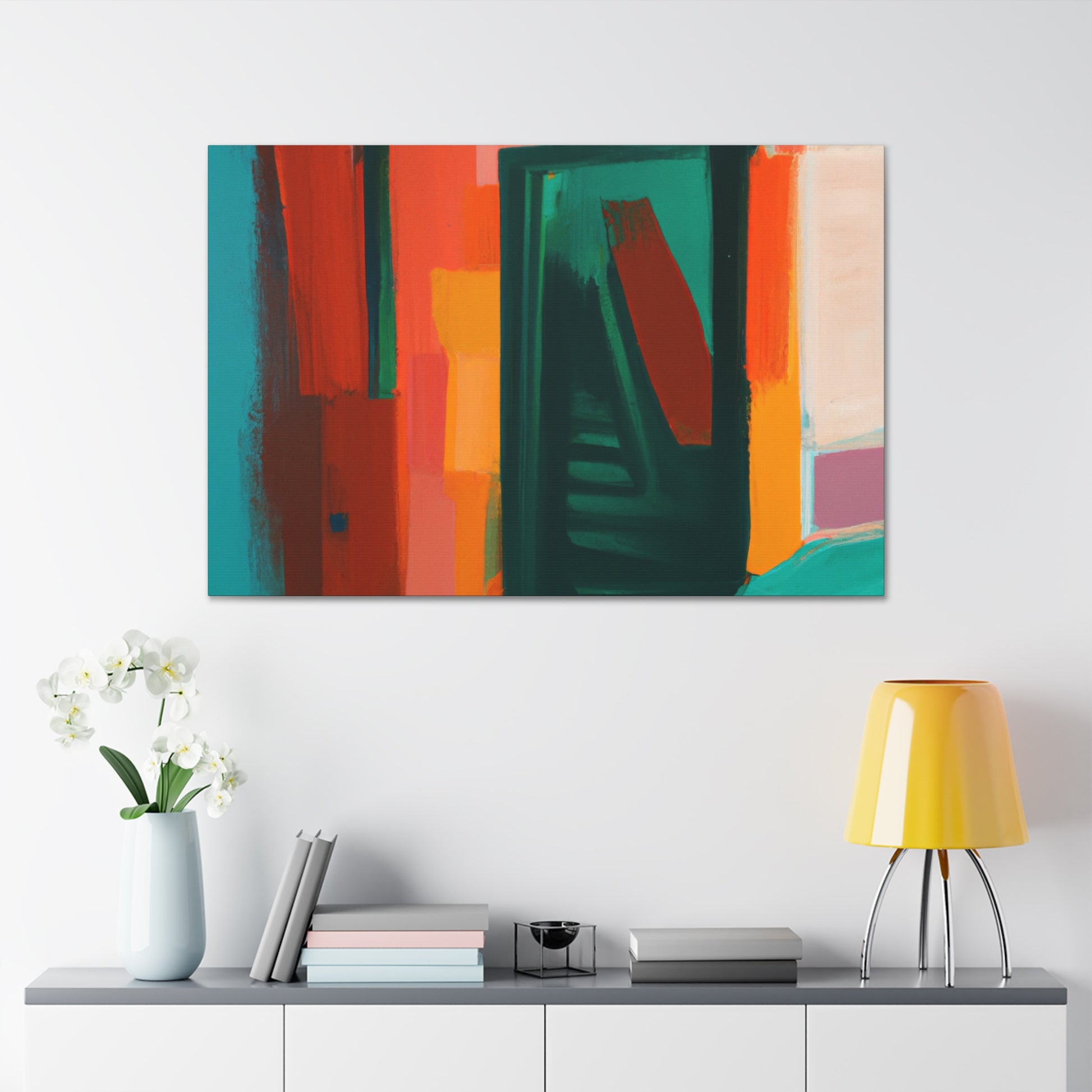 This abstract art digital canvas combines a bold brushstroke look with color blocks to create a beautiful, modern piece. The vibrant and harmonized colors instantly brighten up any living room and help create a relaxing atmosphere. The canvas is ready-to-hang and will look lovely in any home offering a hint of abstract charm. #AbstractArt #HomeDecor #LivingRoom #DigitalArt #InteriorDecor #ModernDesign #Style #CanvasArt #StyleStatement #Colorful #AbstractPainting