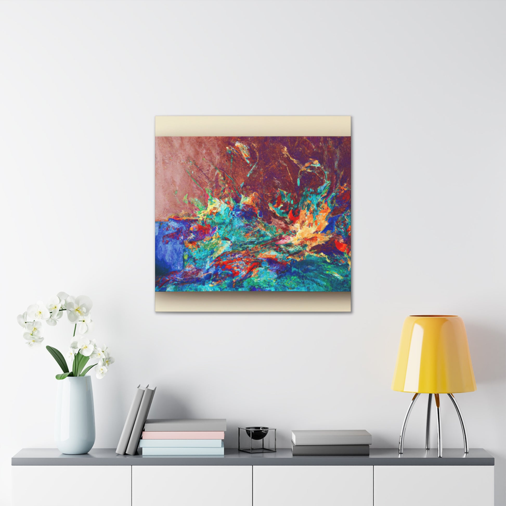 This abstract, digital art piece will be sure to liven up any living room. The multicolored canvas is filled with swirls, patterns, and geometric shapes that will have you lost in a trance-like state. Add it to your home to show off your bold and creative side and bring an extra element of uniqueness to your living room. #abstractart #artdeco #canvasart #livingroomdecor #creativelivingroom #trippypainting #digitalart #modernartdeco #abstractdecor #wallartdecor #homeinteriordesign