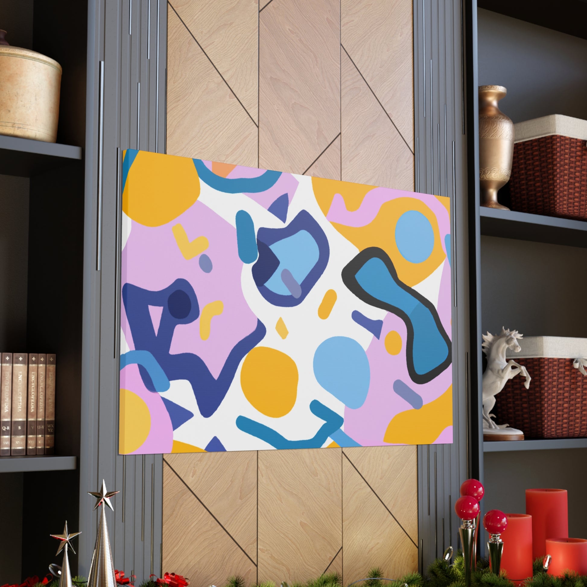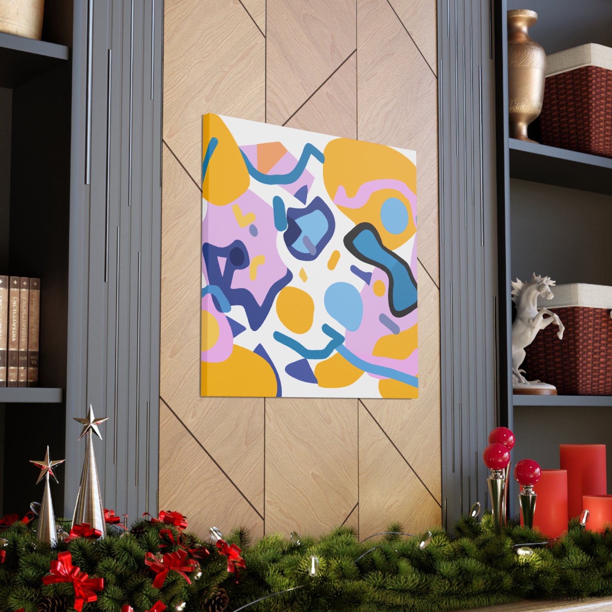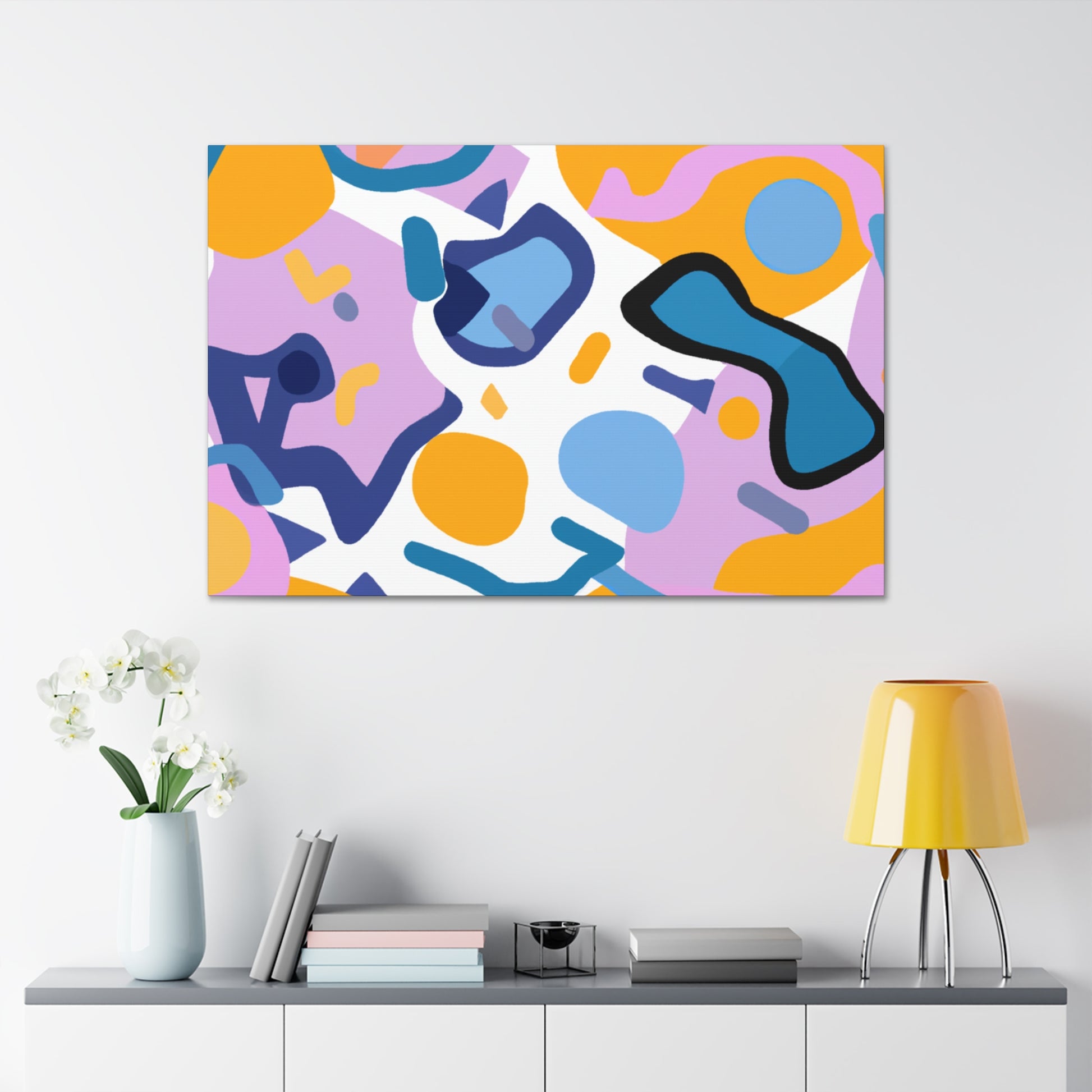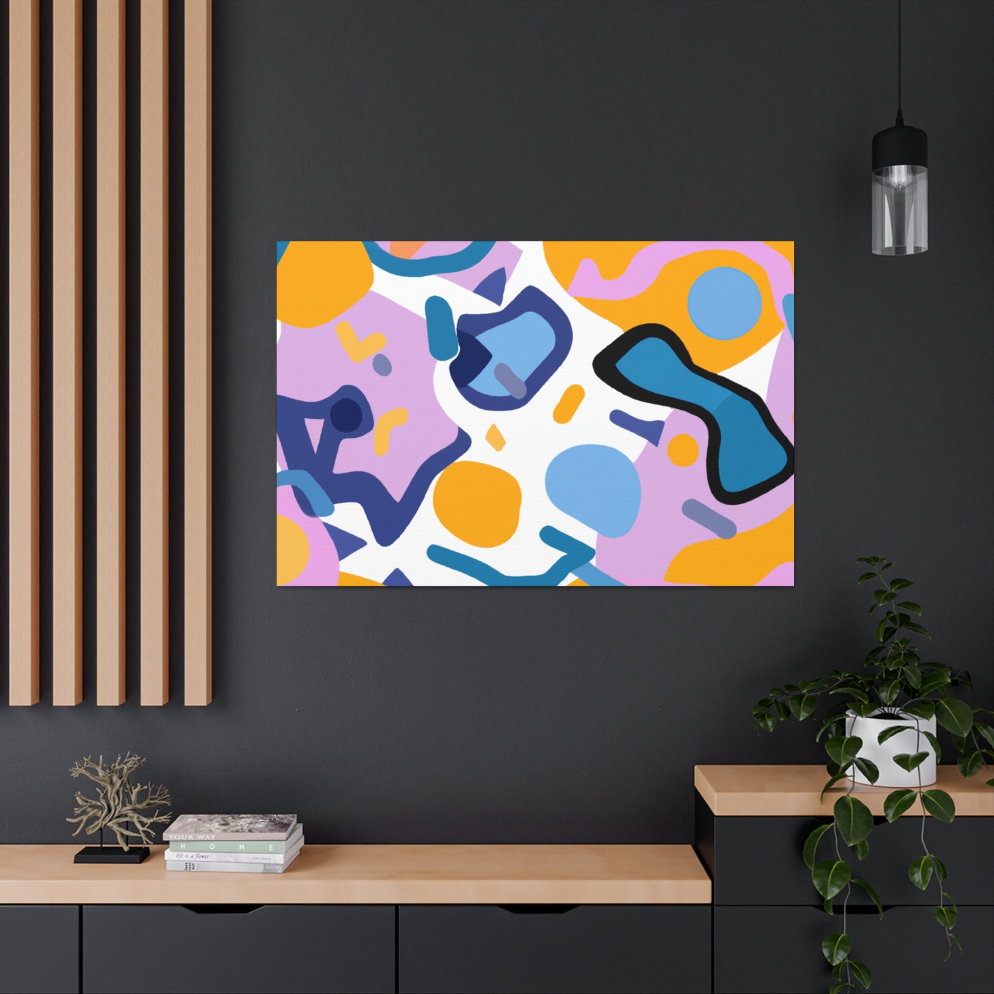 This canvas features a vibrant abstract geometric pattern of cool colors like blue, green, and white that adds an eye-catching and stylish element to any room. Its bold design and sharp lines will draw attention and make a statement. Perfect for brightening up a wall in a home office, living room, bedroom, or hallway, this canvas is sure to make a splash in your space. #abstractart #geometricpattern #canvasart #modernart #coolcolors #homedecor #accentwall #wallart #roomideas #homedesign #interiordesign