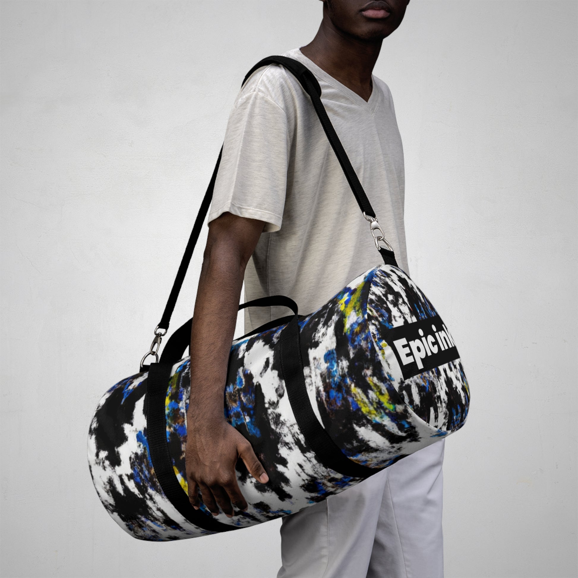 This luxury duffel bag has an eye-catching textile design that's guaranteed to turn heads. It's the ideal way to add a touch of style to any outfit. Crafted with the highest quality materials, the bag is lightweight yet sturdy, and features multiple pockets for extra storage. Carry it in hand, on your arm, or use the adjustable shoulder strap for on-the-go convenience. Perfect for travel, weekends, or a visit to the gym - this duffel looks as good as it feels. #luxurybag #luxurytravelbag #stylebag #creativetextiledesign #textiledesign #travelbag #duffelbag #sleekbag #luxurylifestyle #sturdybag #on-the-go