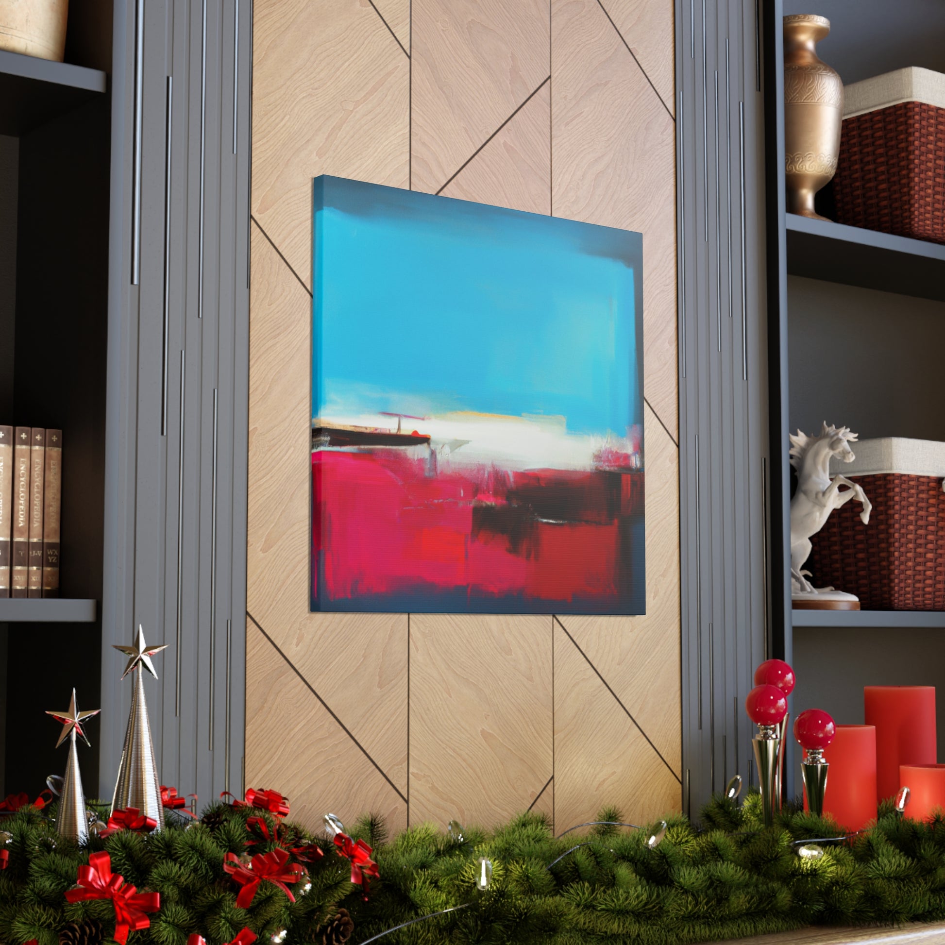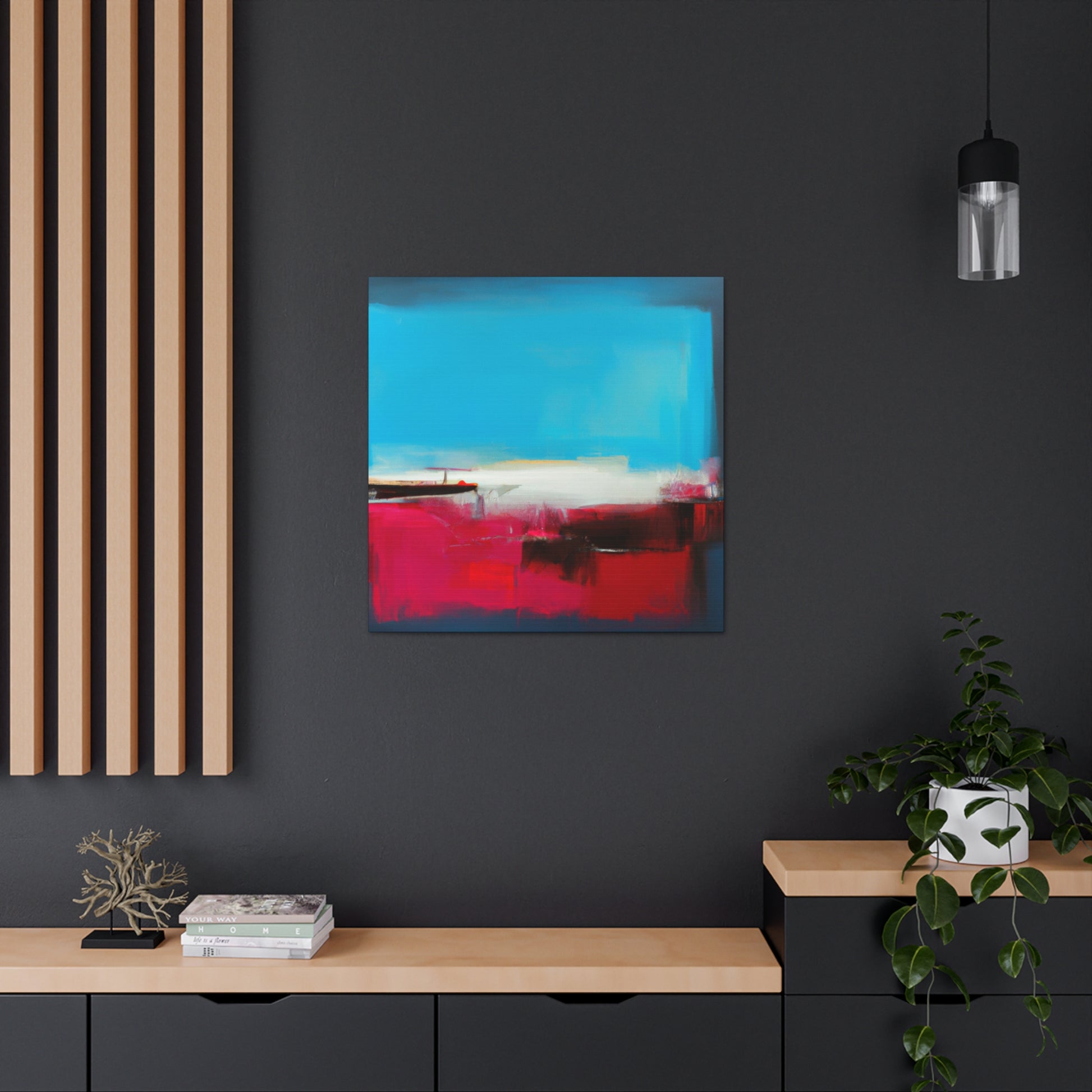 This stunning digitally-made abstract painting is perfect for any modern living room. It combines elements of earthy colours, vibrant blues, and deep perspectives, making it a unique statement piece no matter how you pair it. The canvas detailing and brush strokes make it a truly modern masterpiece. #abstractart #modernart #canvasart #digitalart #artlovers #homedecor #walldecor #interiordesign #livingroomdecor #statementpiece #artforsale