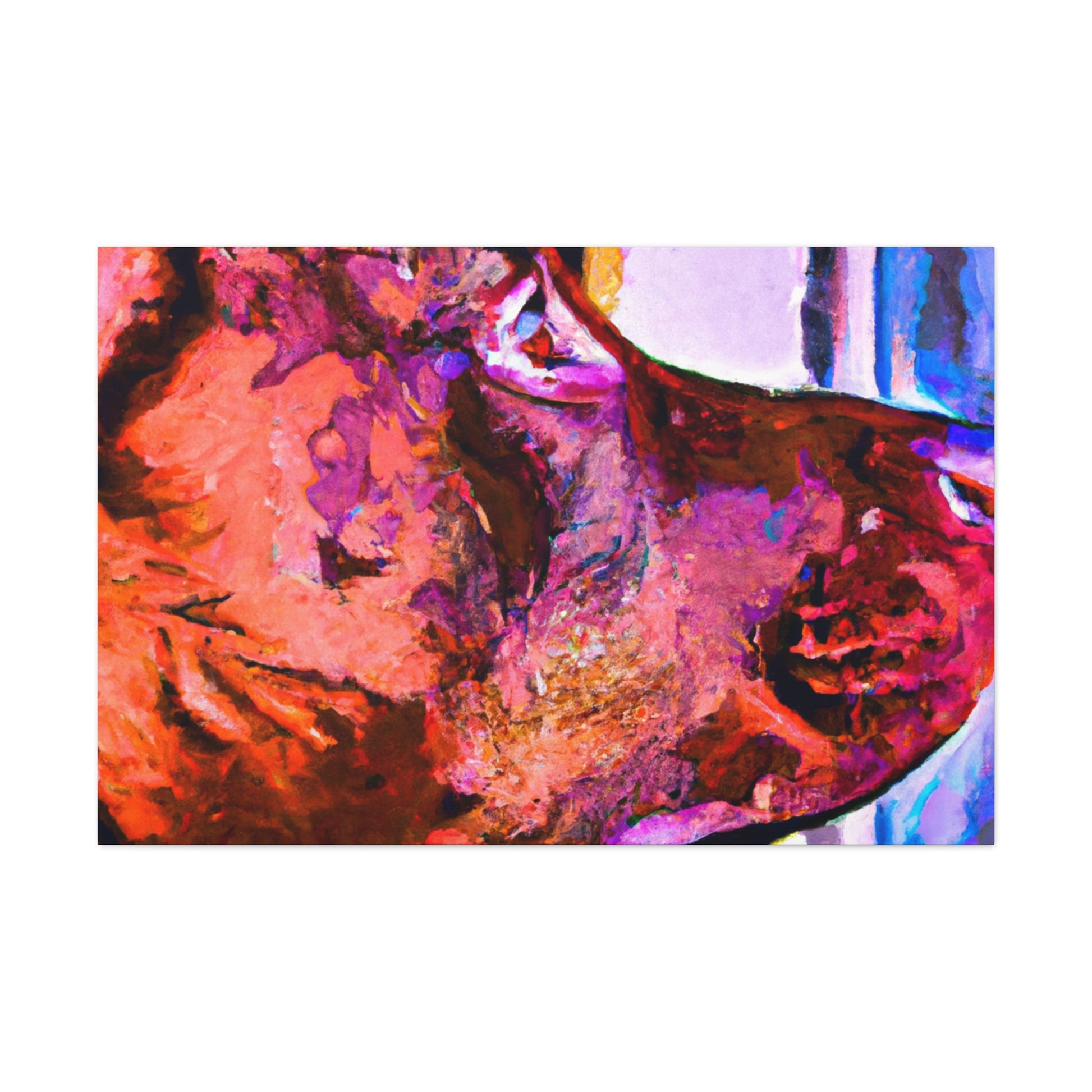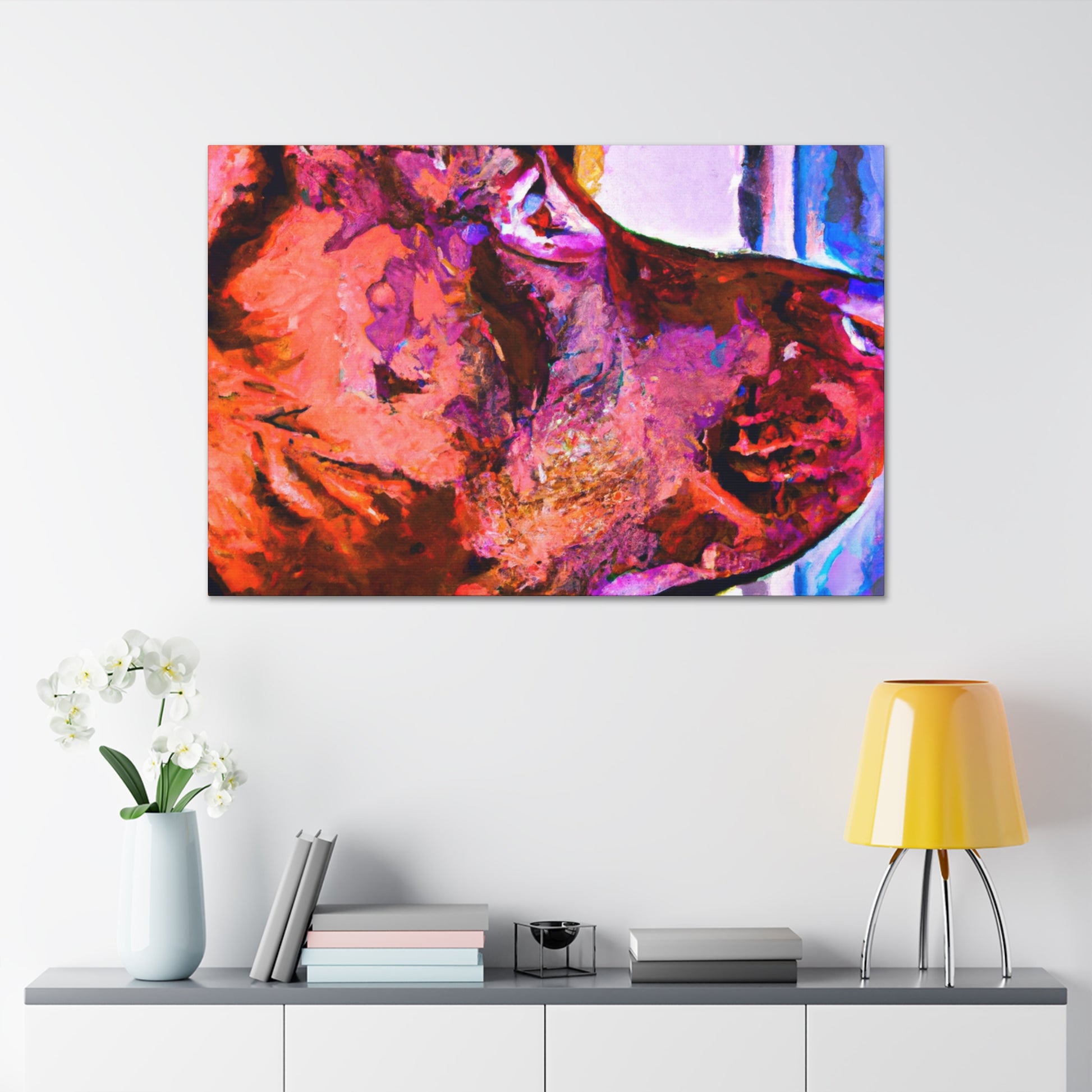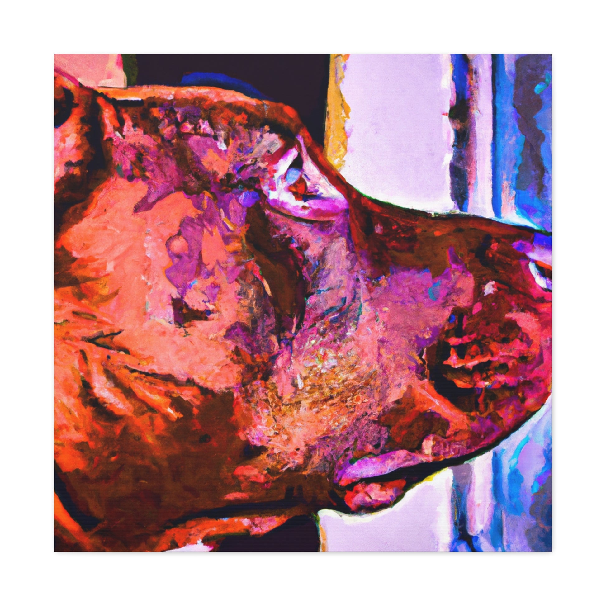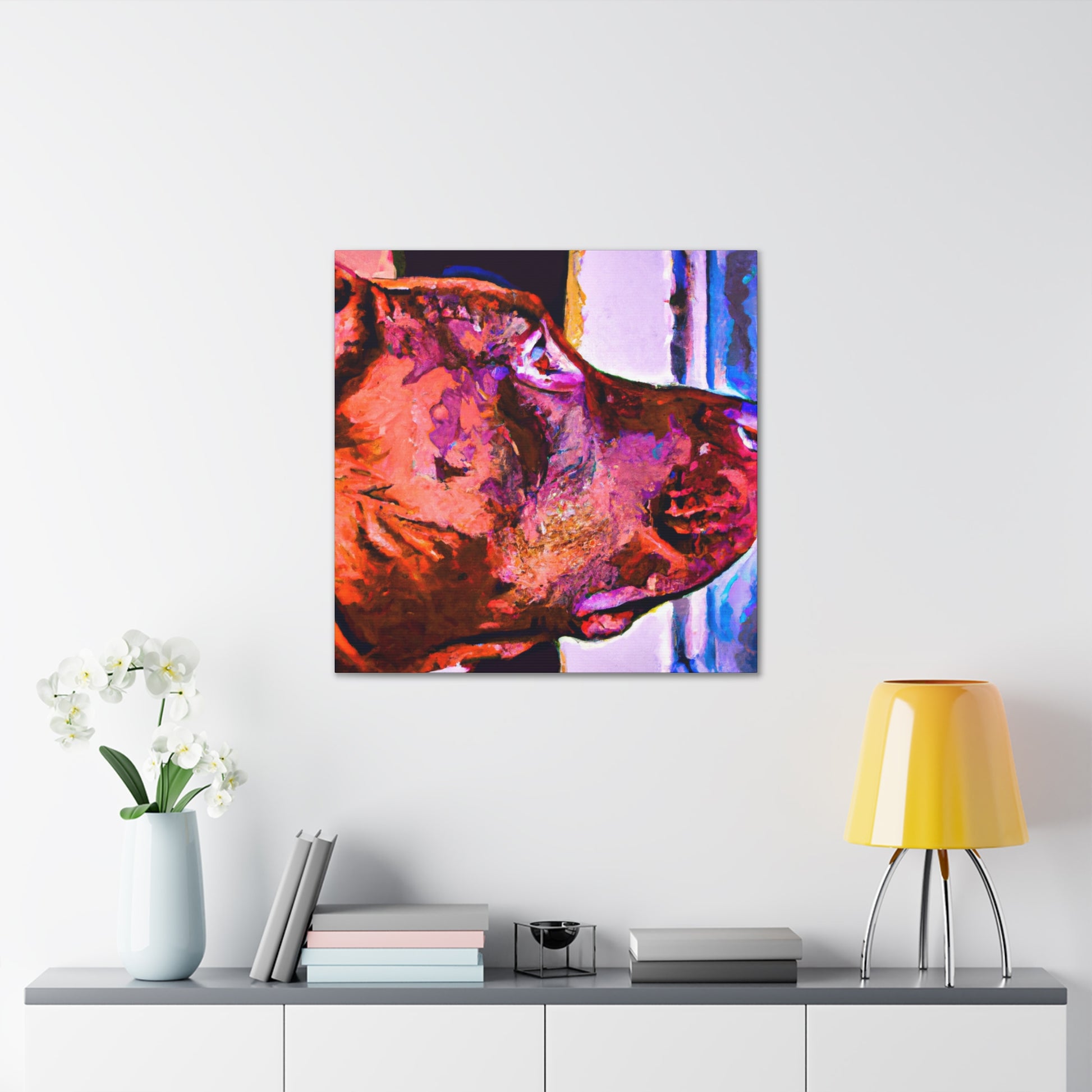 This handpainted canvas is an abstract yet stunningly realistic piece of art. A young brown pit bull is the only clearly visible figure, staring out a window with a soulful expression. Surrounding the dog, chaotic swirls, energetic circles and waves of color create a lively and vibrant atmosphere. Hang this dynamic piece in your home or office and bring a slice of nature into your aesthetic. #abstractart #painting #canvas #pitbull #dogart #dynamicart #vibrantart #natureart #doglovers #soulfuleyes #youngandenergetic