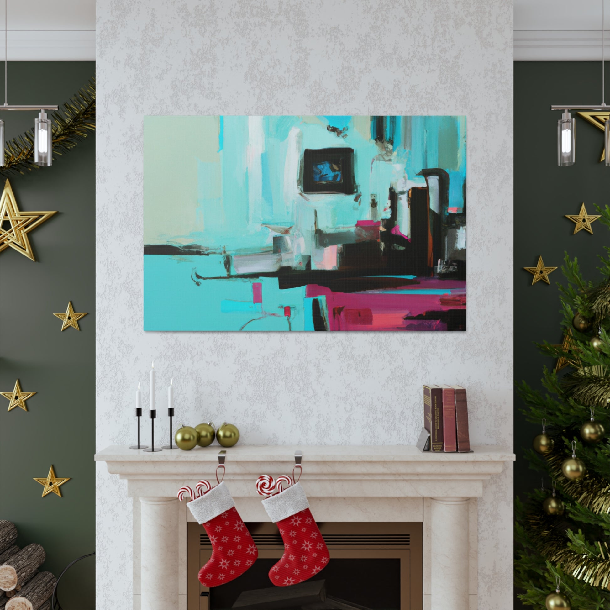 This modern digital art canvas is perfect for adding a unique edge to any living room. The deep blue, black and white tones in the abstract pattern provide a bold yet calming backdrop for your furniture and decor. The sharp contrasts of the blocks of colour are brought to life and balanced with the graceful curves in the design, creating a piece that is both stylish and eye-catching. #art #canvas #digitalart #abstract #painting #livingroom #interiordesign #home #blue #blackandwhite #modern #statementpiece