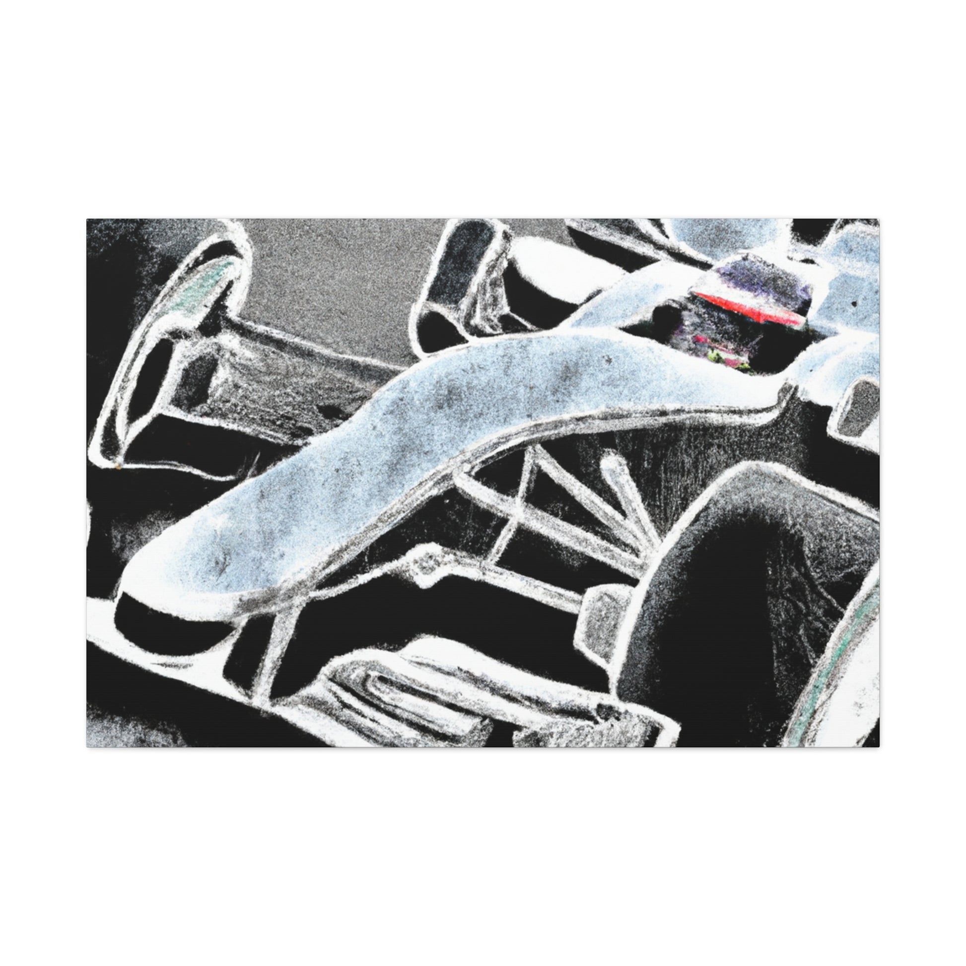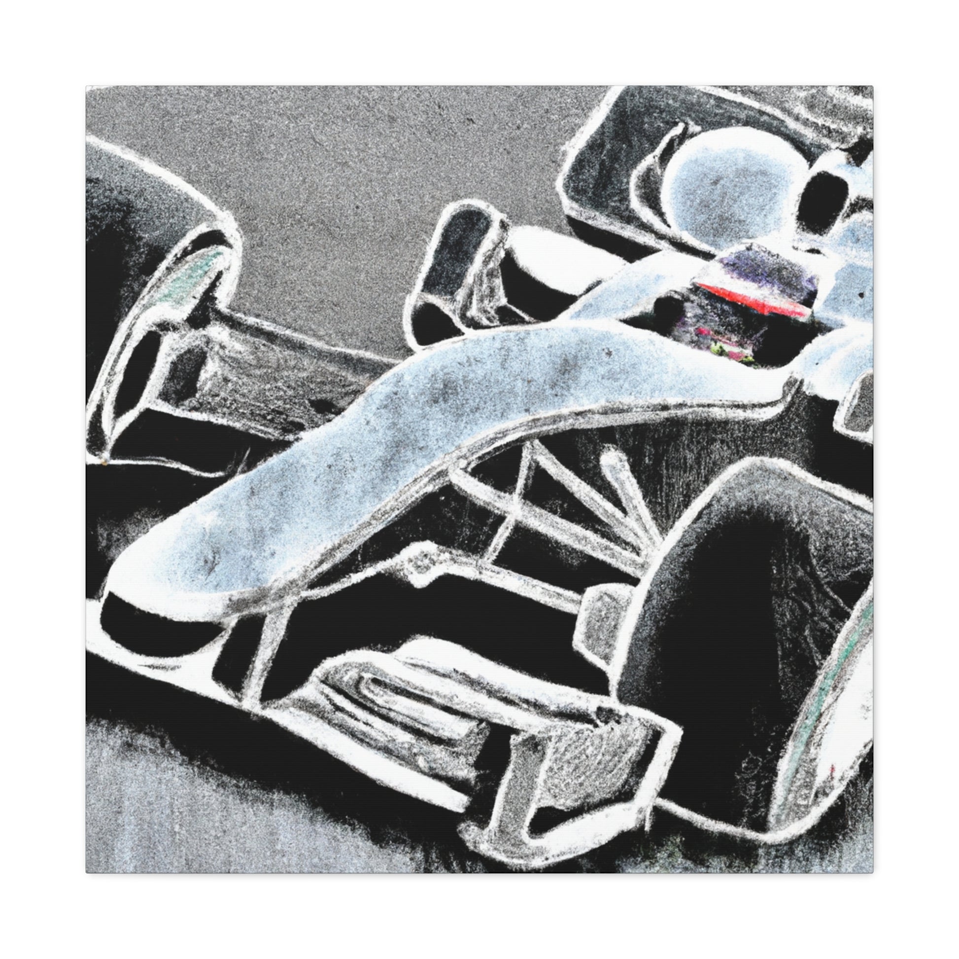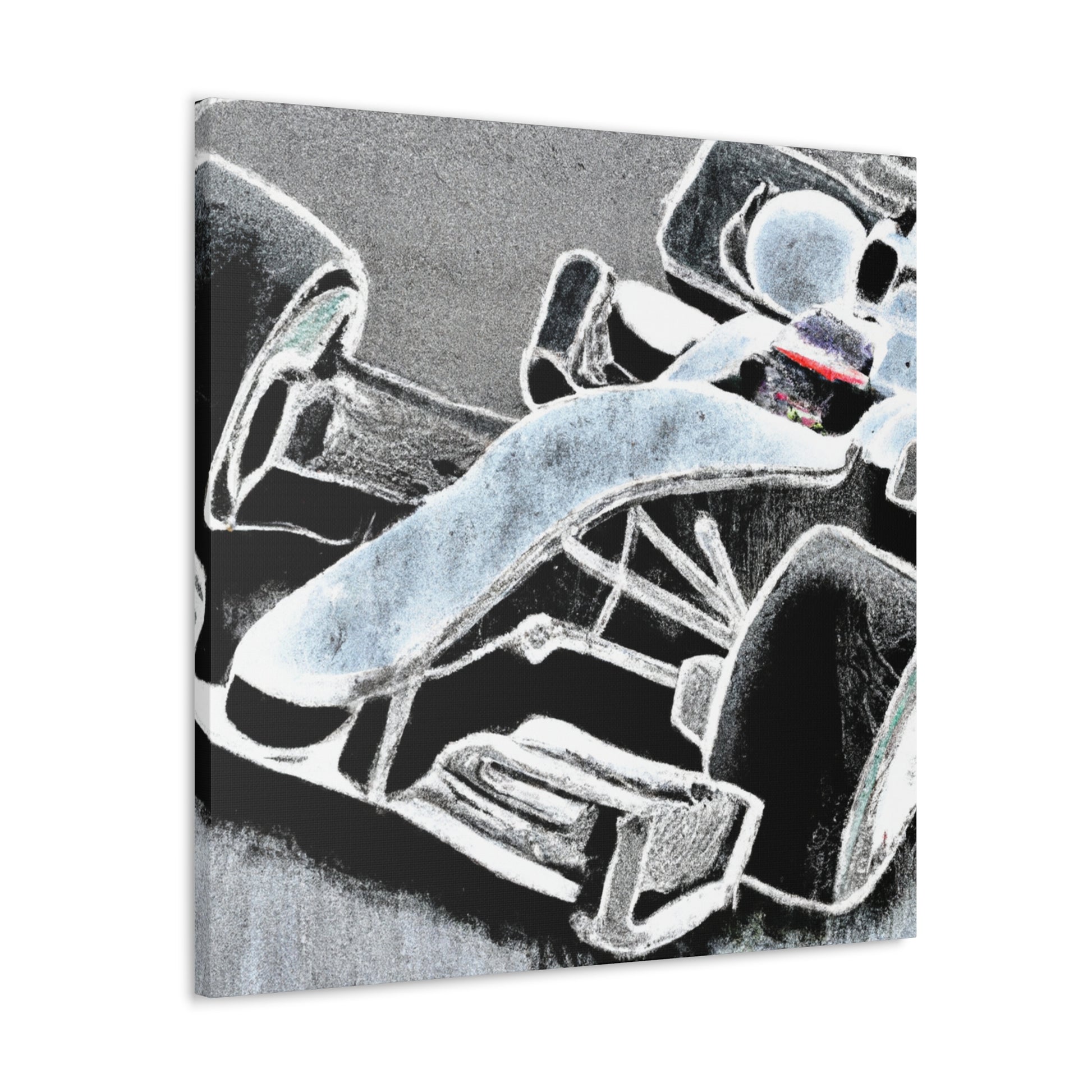 Art meets speed in this breathtaking canvas of a Formula One car, rendered in the stylish chalk art style for an incredible look. Set against a bold background to make a statement, this larger than life piece captures the essence of the race, and will fit in perfectly with any motorsport-inspired decor. #art #canvas #motorsport #chalkart #formulaone #decor #painting #racelife #speed #souvenir #wallart
